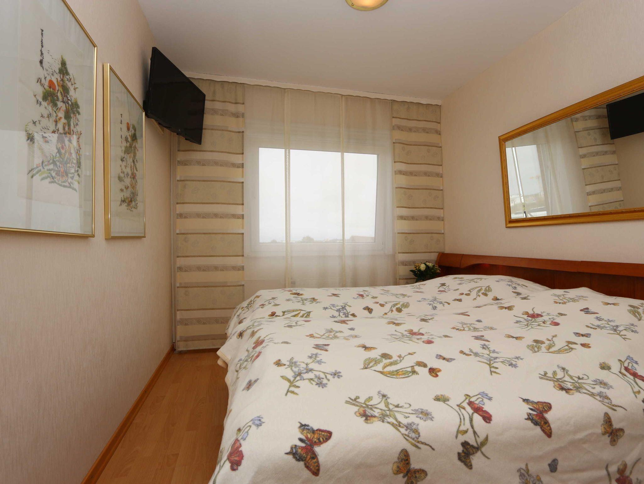 • Im Schlafzimmer befindet sich ein Doppelbett (ca. 180 x 200 cm) und eine Flachbildfernseher.