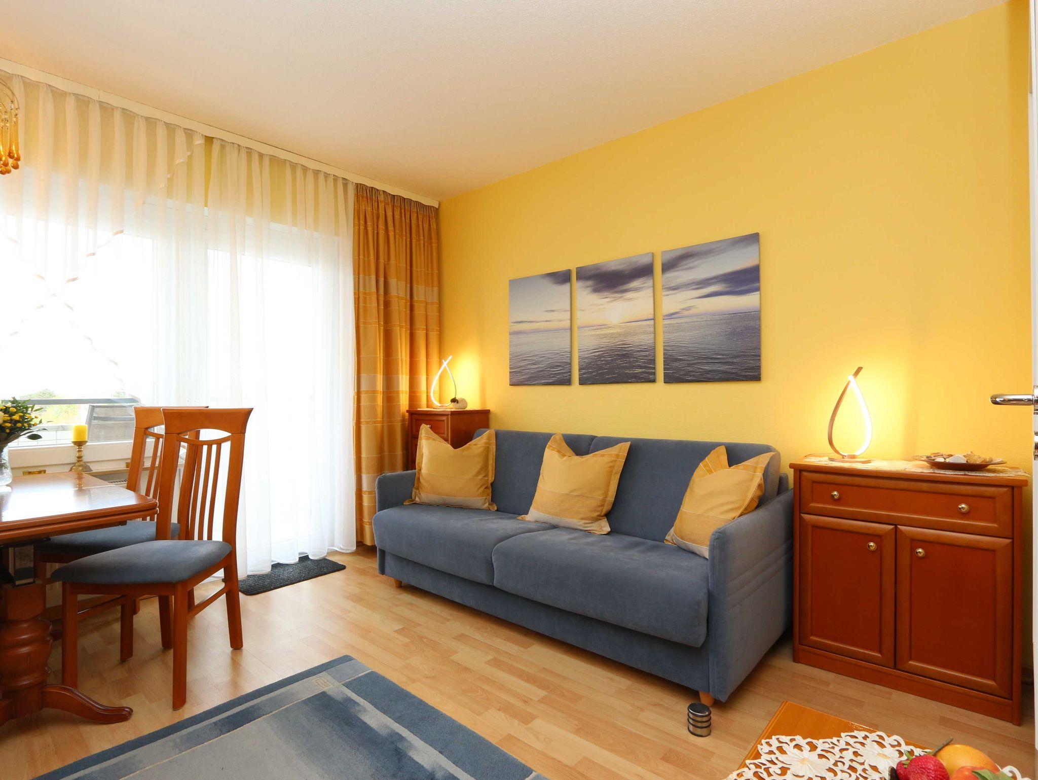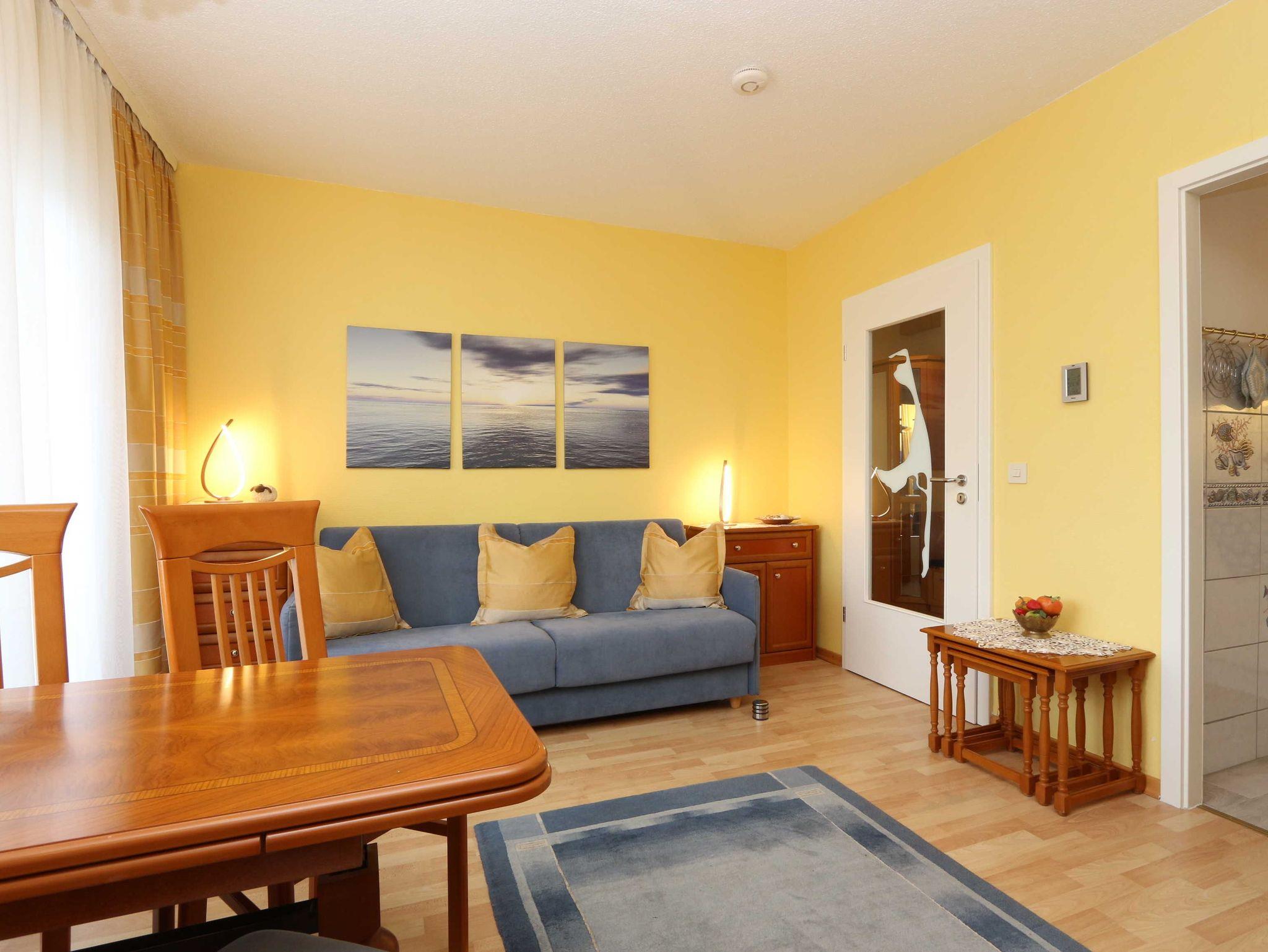 • 2-Zimmer-Ferienwohnung (3.OG, Appartement 71) mit komfortabler Ausstattung für 2 Personen (ca. 39 m²)mit Wohn- und Esszimmer, Schlafzimmer, Küche, Bad und Balkon;
