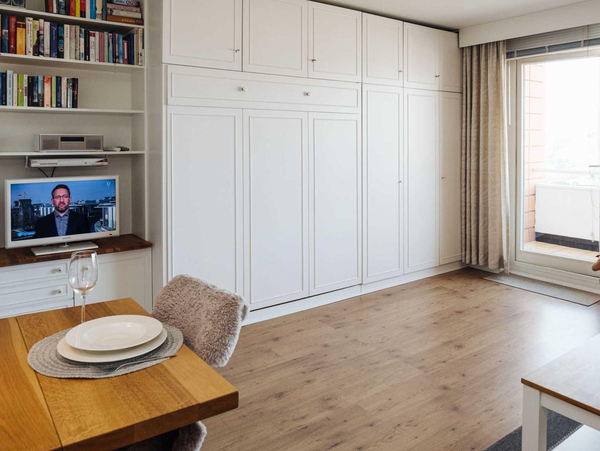 Die 2 Zimmer Ferienwohnung empfängt Sie mit viel Charme. Ihr Feriendomizil hat eine separate Küche und ein helles Duschbad. Im großen Wohn-/Essbereich finden Sie ein Schrankbett. Im Schlafzimmer haben Sie die Möglichkeit die beiden Einzelbetten (Boxspringbetten) auch als Doppelbett zu nutzen. Der großzügige Balkon hat einen fantastischen Blick nach Westen.