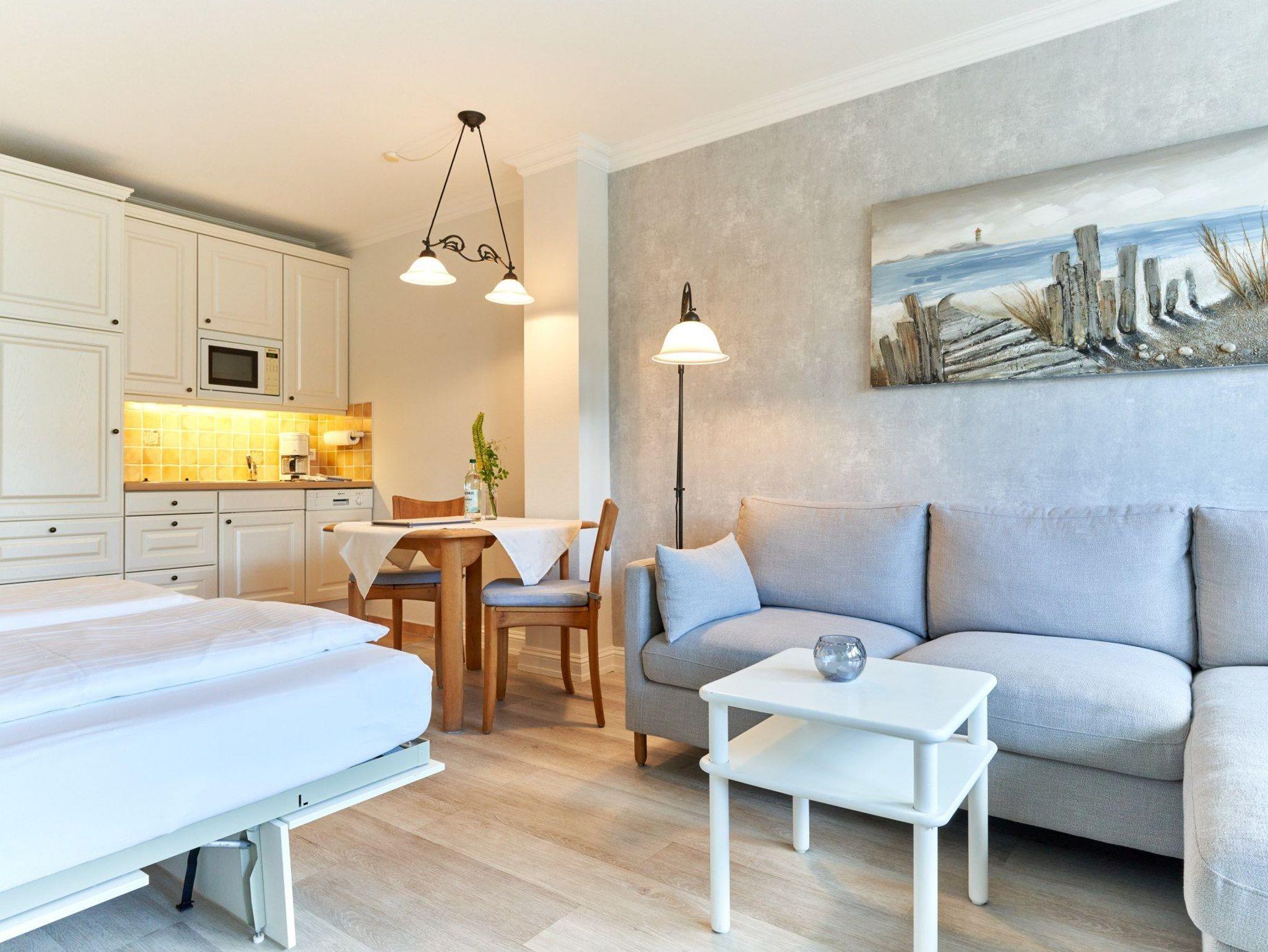 Diese ca. 40 m² große 1-Zimmer- Ferienwohnung bietet Platz für bis zu 2 Personen und befindet sich inmitten von Westerland auf Sylt.