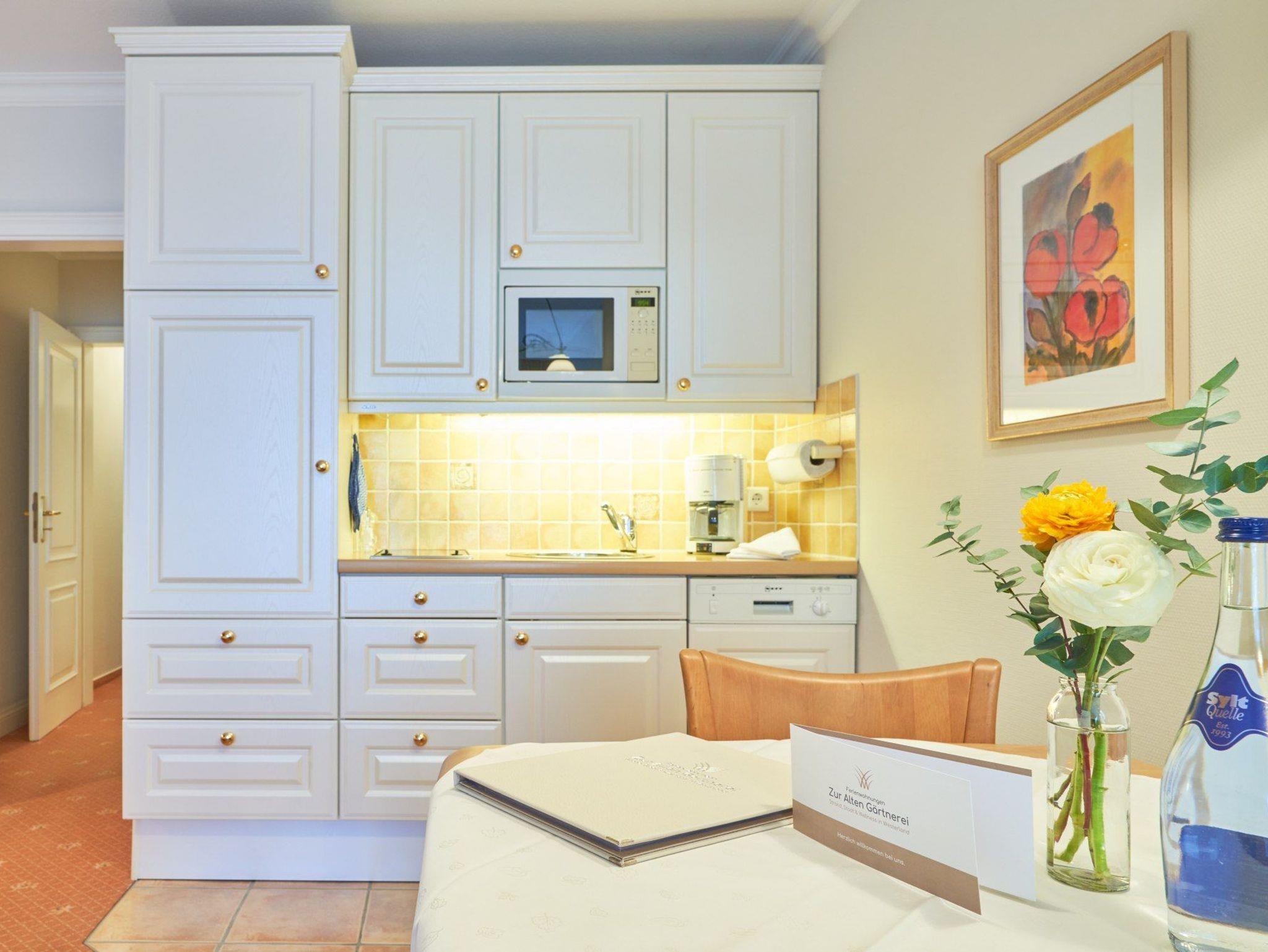 In dieser kleinen aber feinen 1-Zimmer-Ferienwohnung eignet sich für bis zu 2 Personen. Auf ca. 40 m² verteilen sich Wohnzimmer mit integrierter Küche und Essplatz. Ebenfalls hier zu finden ist der Schlafbereich mit einem Schrank- Doppelbett. Das Badezimmer präsentiert sich modern und in hellen Farben mit Dusche, Toilette und Waschbecken. Außerdem bietet diese Ferienwohnung einen begehbaren Kleiderschrank.