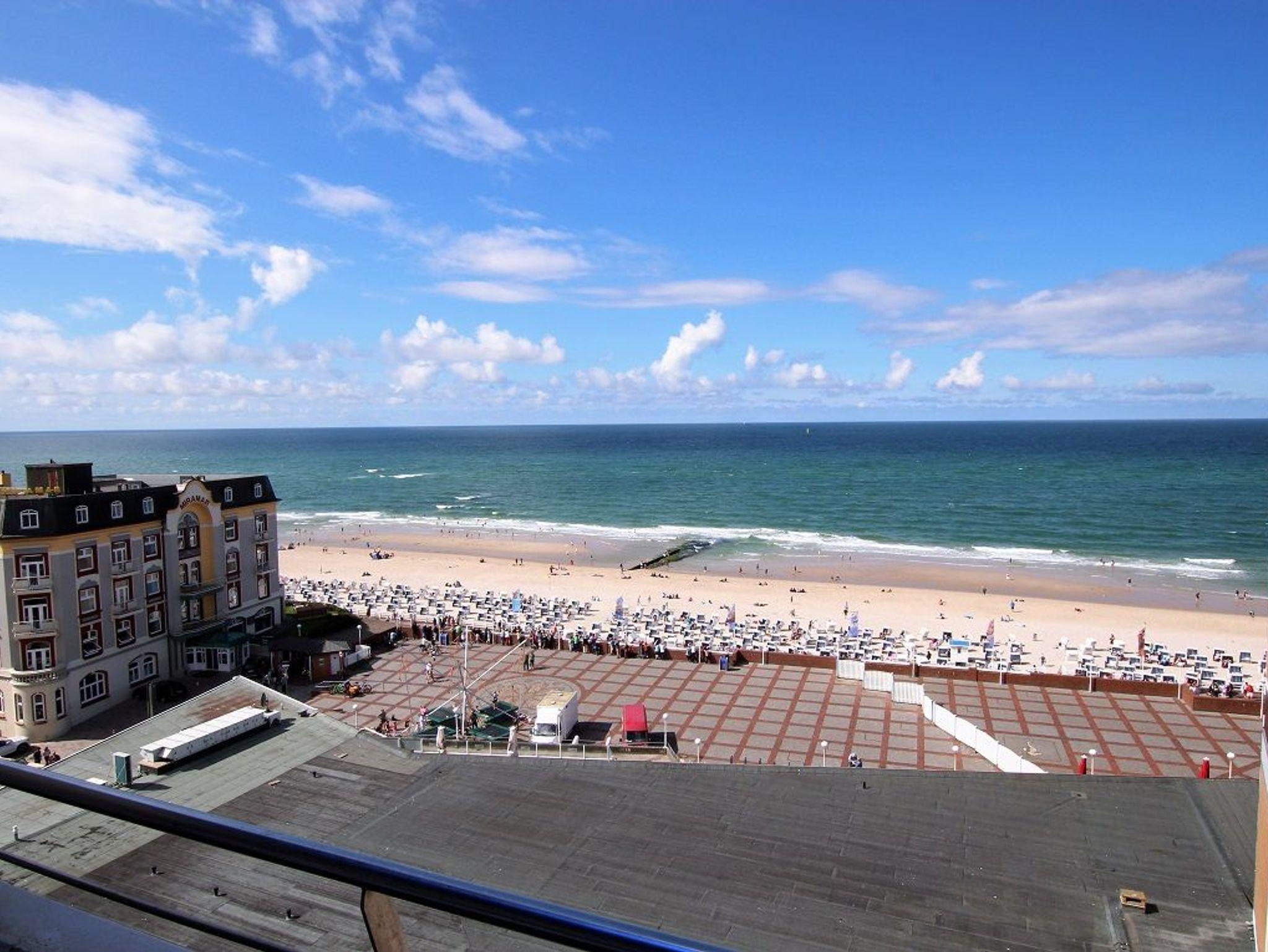 Das Appartement mit Westbalkon und Meerblick befindet sich in der 7. Etage eines gepflegten Appartementhauses im Kurzentrum, direkt am Hauptstrand. Das Haus liegt zentral in Westerland, zwischen den beiden großen Fußgängerzonen.