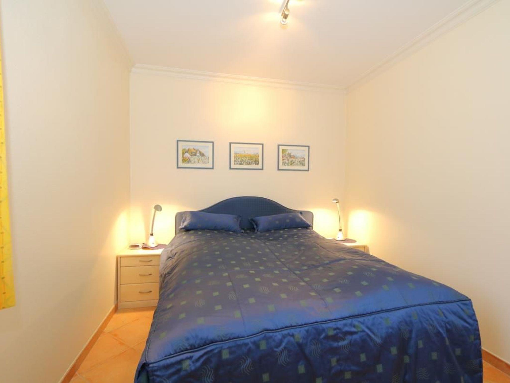 Im Schlafzimmer befindet sich ein Doppelbett mit zwei Nachtschränken und geräumigem Kleiderschrank?. Das Badezimmer ist hell gefliest und mit Dusche, WC und Waschbecken ausgestattet.