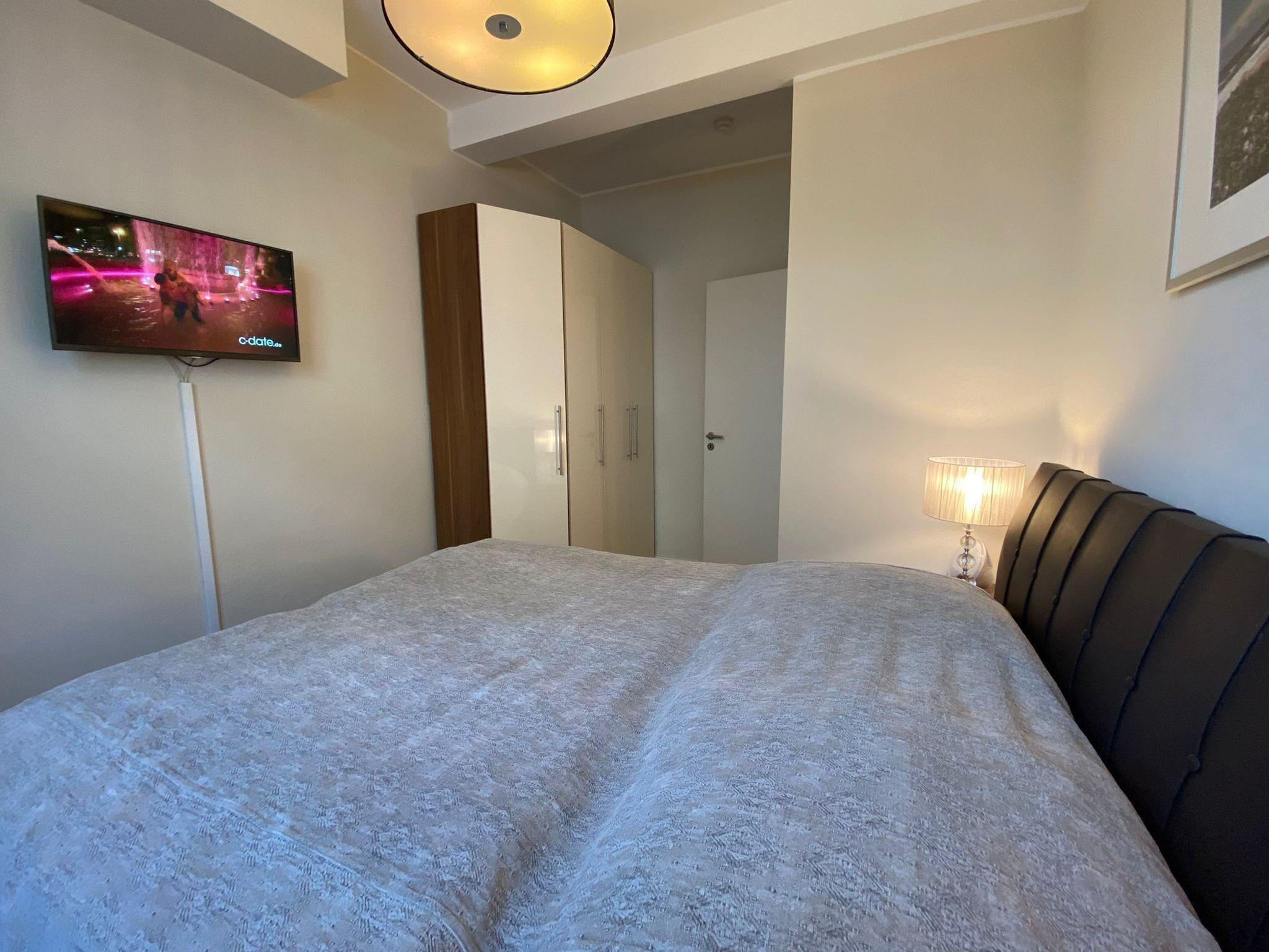 Ein weiteres Schlafzimmer mit einem bequemen Boxspringbett (180x200 cm), Kleiderschrank und einem eigenen Flachbild-TV.