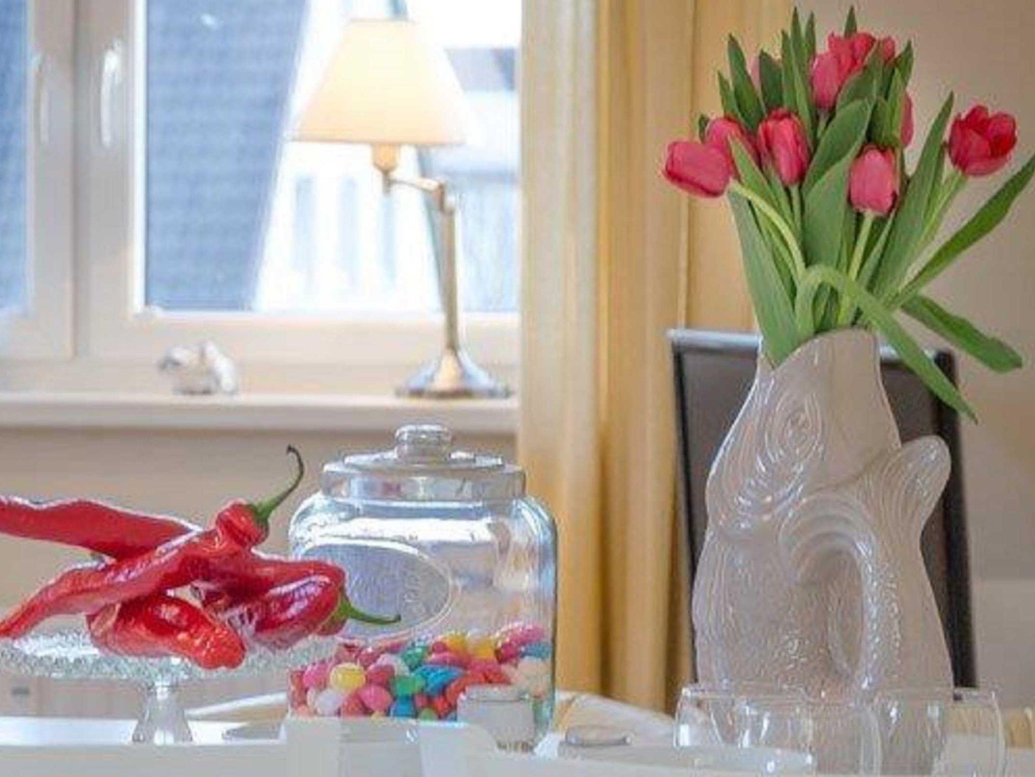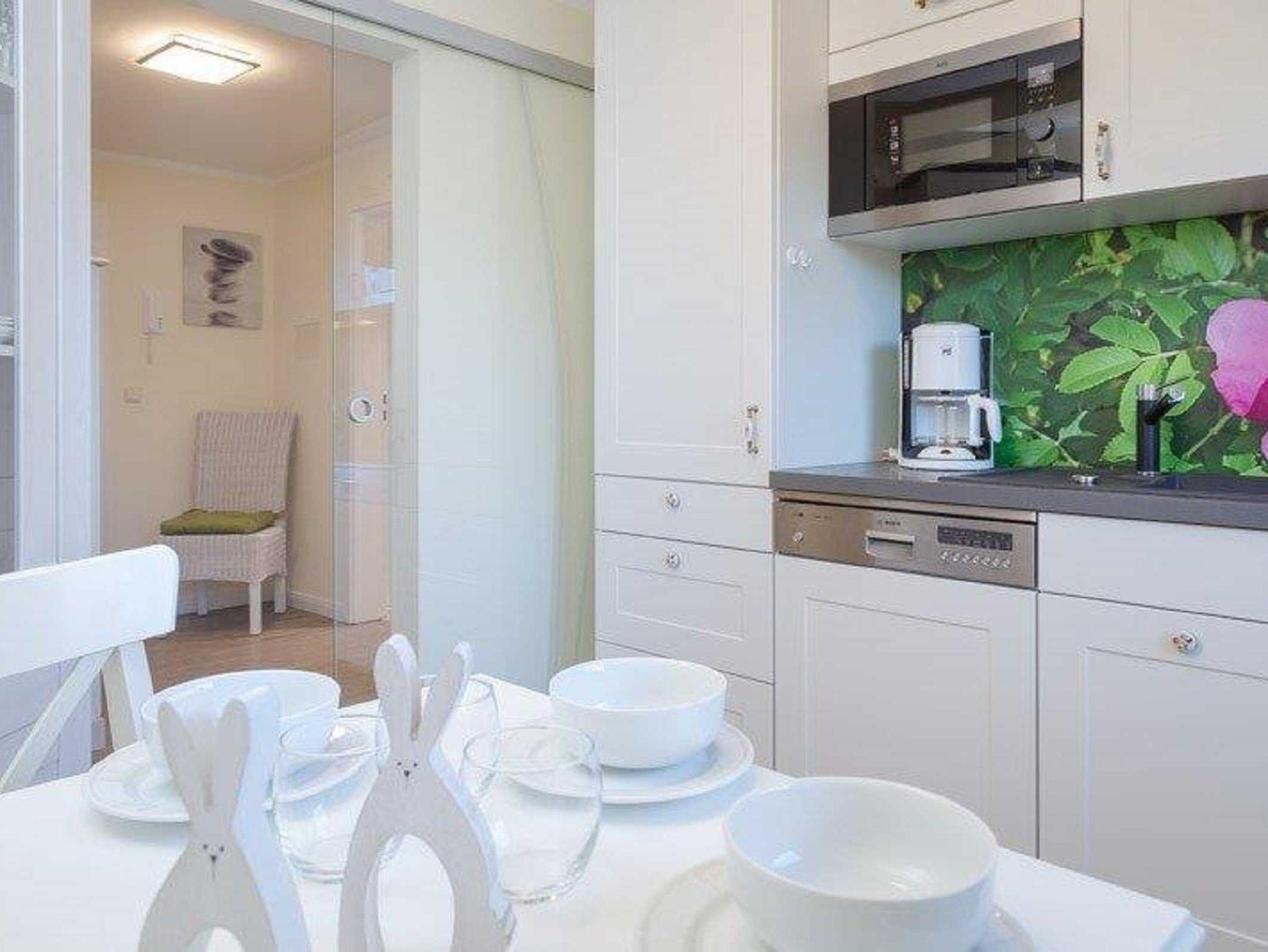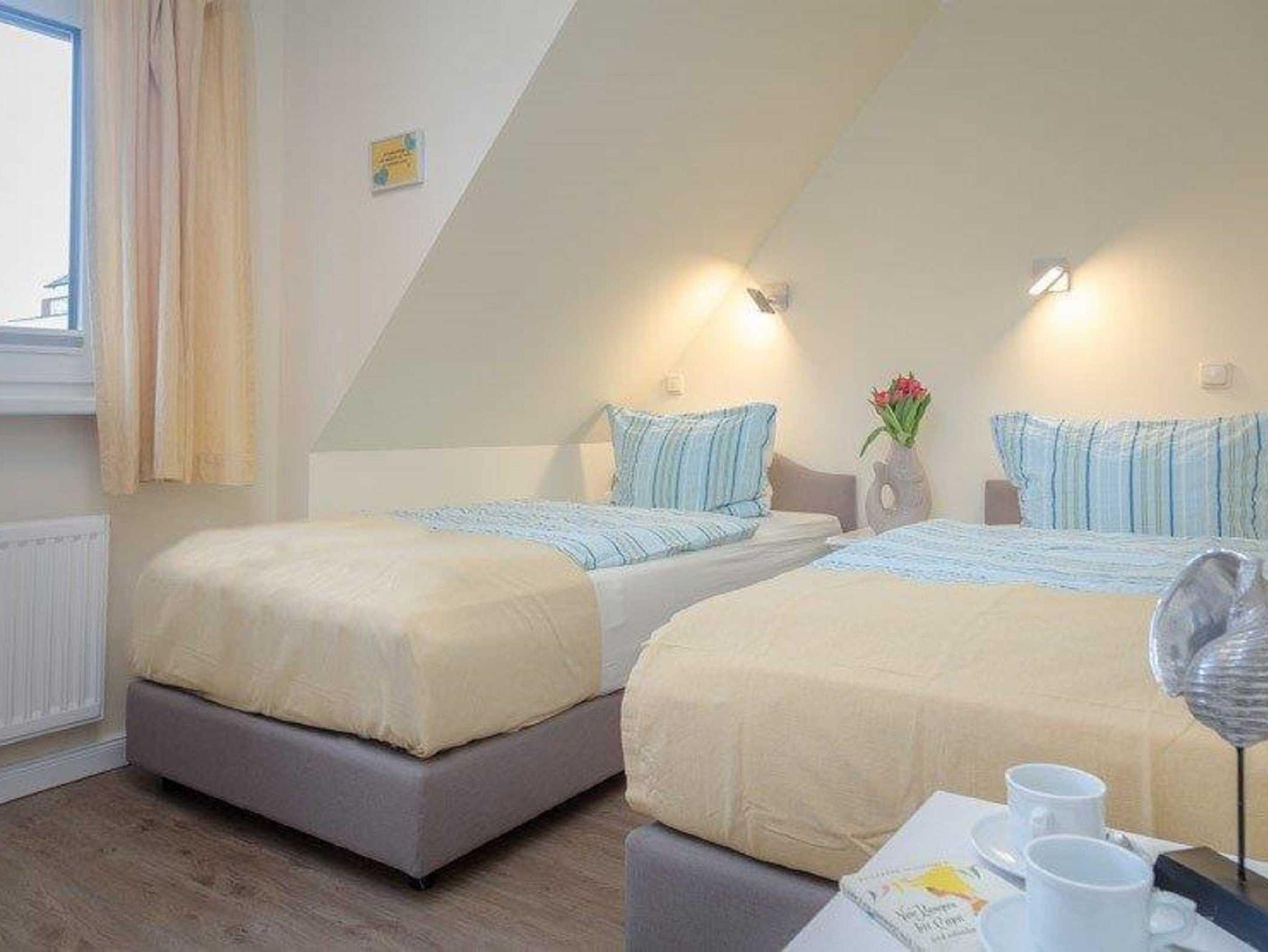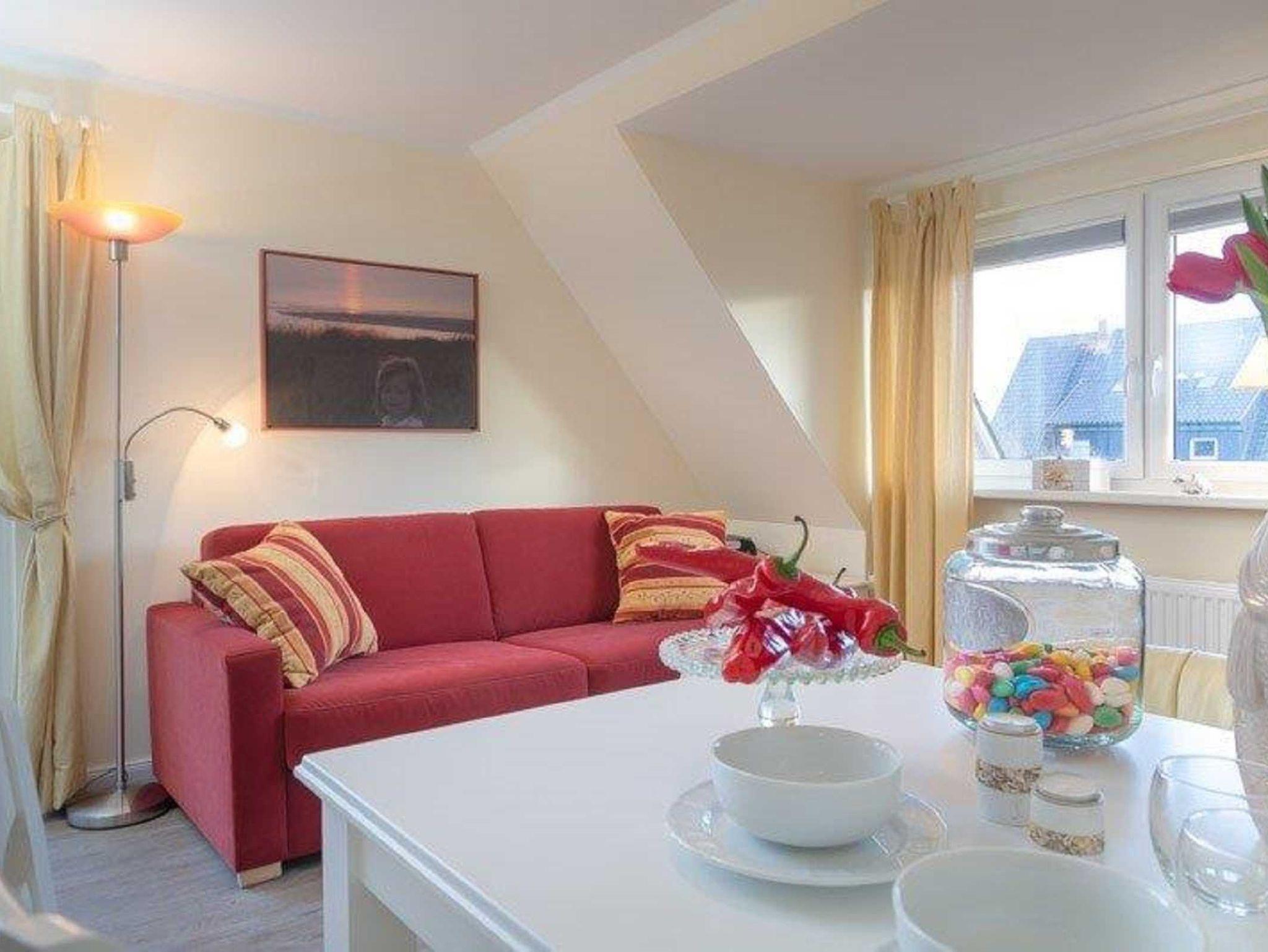 Ein Schlafzimmer mit 2 getrennten Einzelbetten, hochwertige Boxspringbetten (ganz leicht als Doppelbett zusammenzustellen) und ein freundliches und gemütliches Wohnzimmer mit grossem, ausziehbarem Esstisch und Flachbildschirm, DVD, Radio mit CD. W-Lan kostenfrei. Couch zum Umbau für 1-2 weitere Schlafmöglichkeiten. Grosser sonniger Ostbalkon mit Sitzgelegenheiten und einem Strandkorb. Fenster zum Süden mit Blick zu den Dünen und Sonne am Nachmittag. Neurenoviertes Duschbad mit Fenster, grosszügiger Flur und eine sehr gut ausgestattete Küche mit Spülmaschine, 4-Plattenherd, Kaffeemaschine, Nespressomaschine, Wasserkocher, Eierkocher und Microwelle mit Backofen und Fenster zum Balkon ( Durchreiche zum Frühstück in der Morgensonne ). Die Ferienwohnung Heiderose (ca. 50m²): für 4 Personen möglich, für 3 Personen gemütlich. Eigener Parkplatz direkt am Haus, Fahrradständer am Haus Obwohl zentral gelegen (3 Min. zur Friedrichstrasse und 3 Minuten zum Strand) absolut ruhige Lage in einer kleinen sehr gepflegten Wohneinheit. Wunderschöner ruhiger Balkon mit Blick ins Grüne. Zum Bahnhof 10 Min zu laufen.
