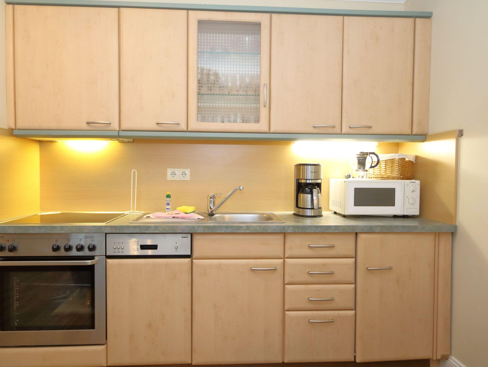 Die Küchenzeile ist mit Spülmaschine und Backofen, Toaster Microwelle und Kaffeemaschine sowie Wasserkocher und allen erforderlichen Küchenutensilien komplett ausgestattet.