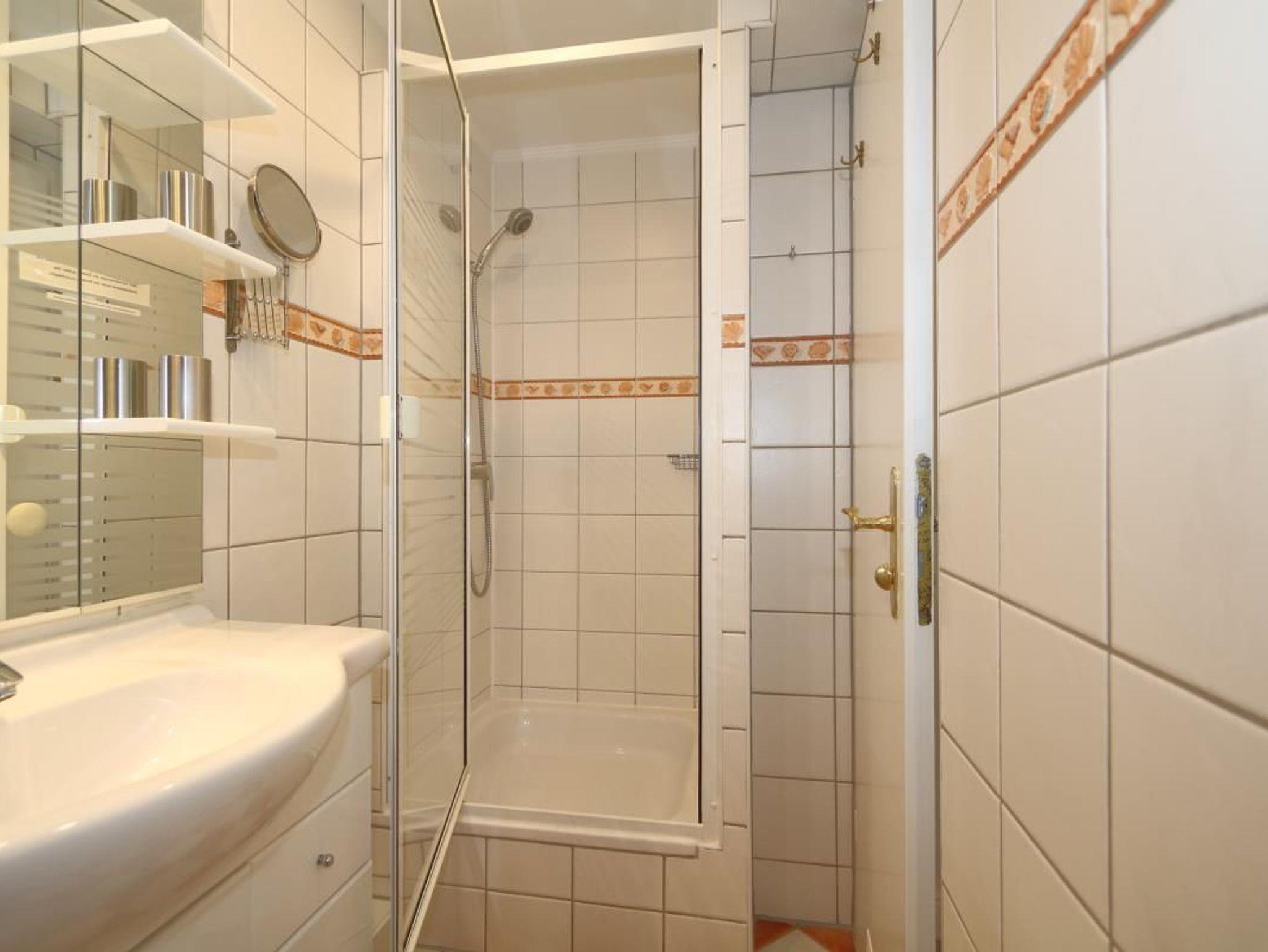 Badezimmer mit Dusche, WC, Waschtisch Fön.