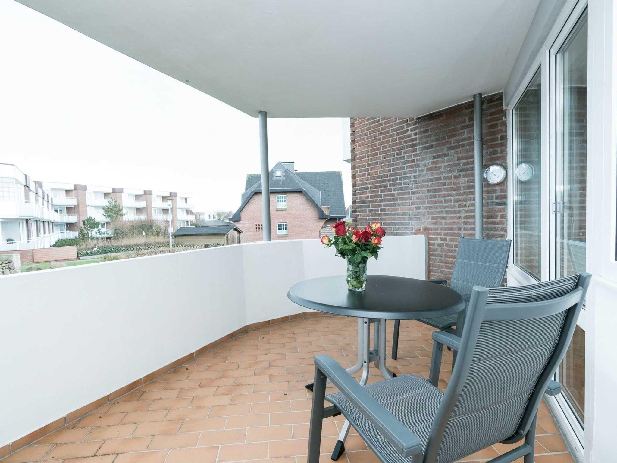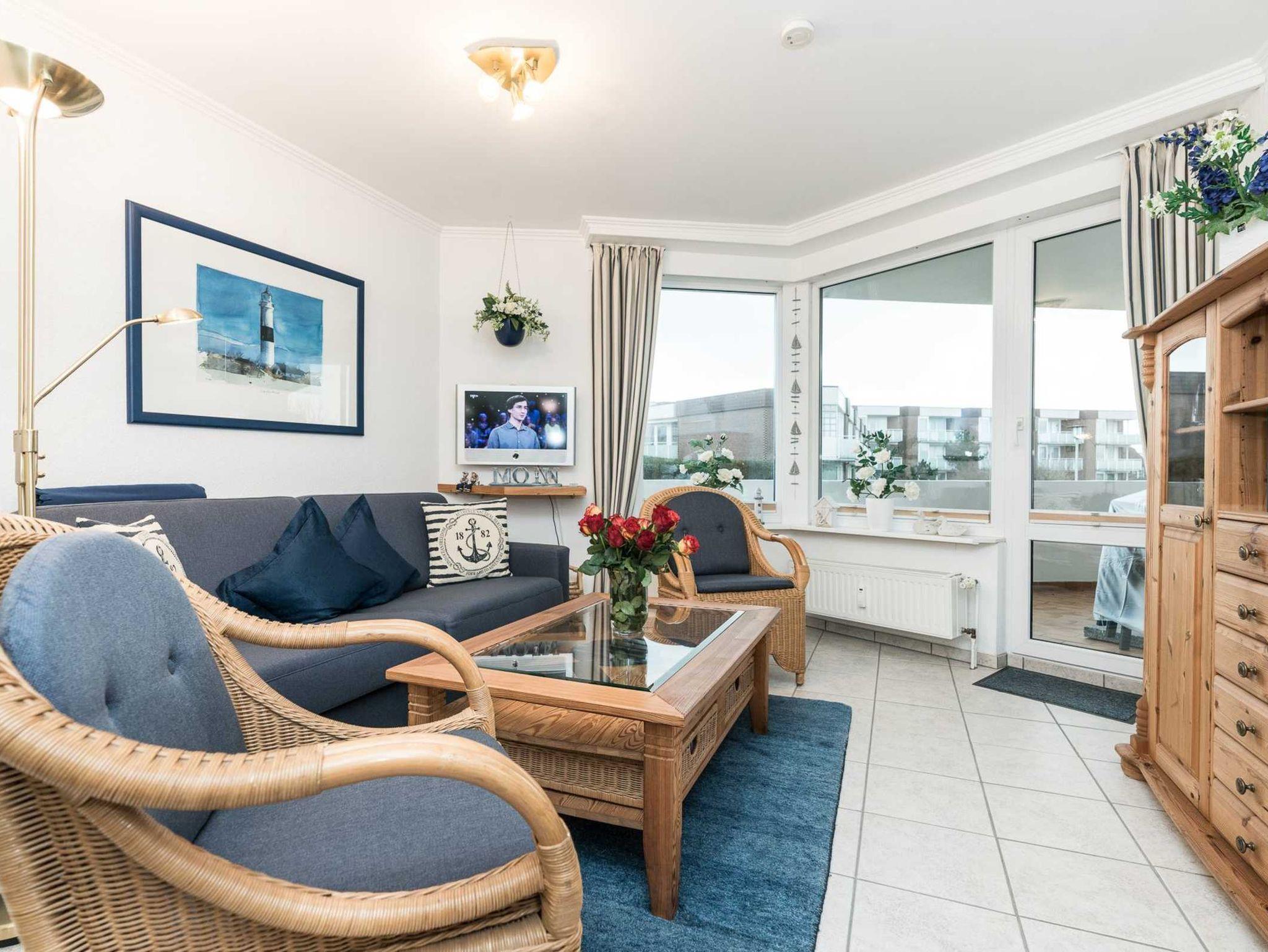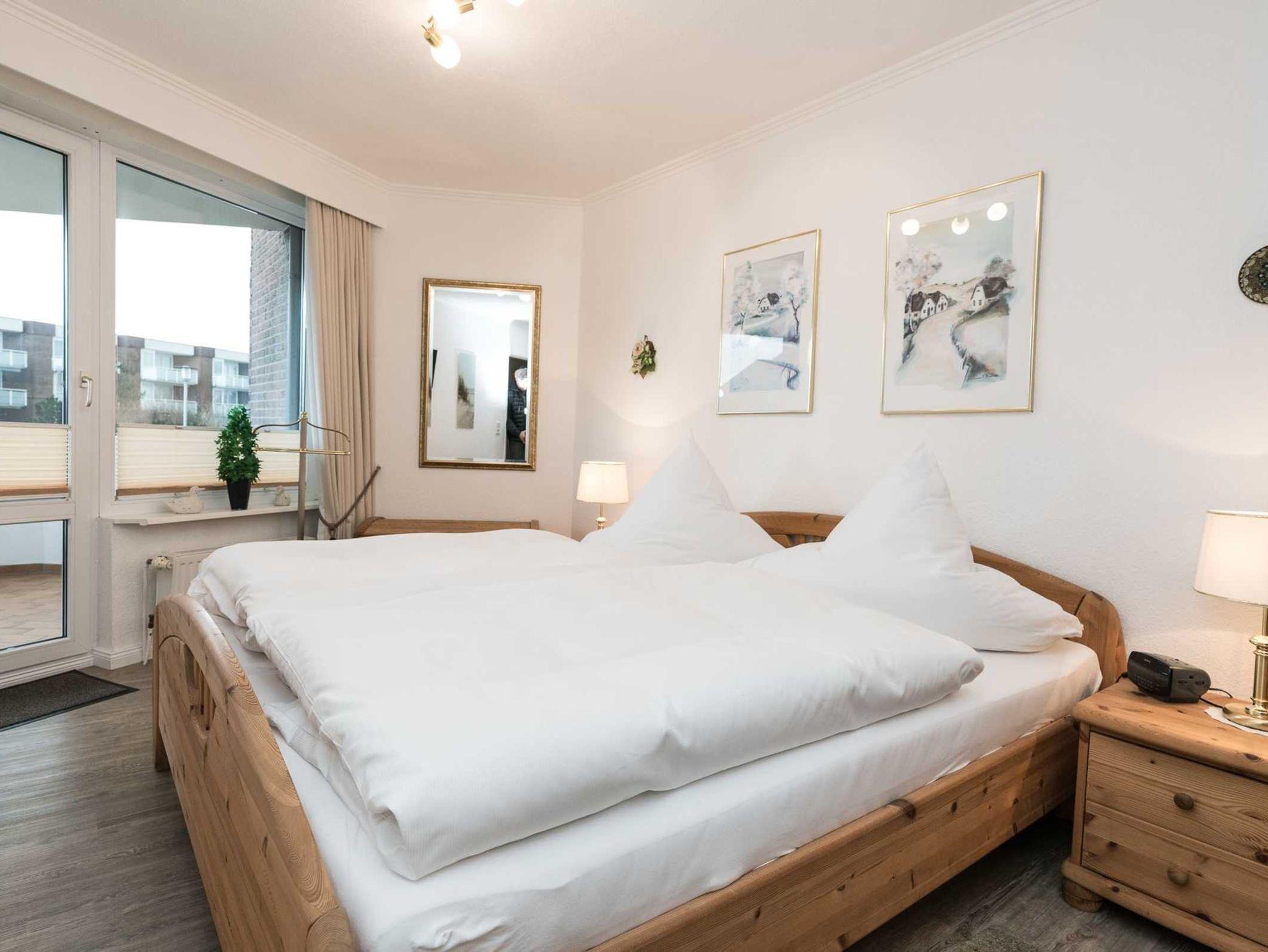 Die Unterkunft befindet sich im 1. OG und hat einen großen Balkon Richtung Südosten. Eine sehr schöne und gemütlich eingerichtete Ferienwohnung wartet auf Sie. Im Wohnzimmer finden sie eine bequeme Sitzecke mit einer Couchliege und Flachbildfernseher. Ein großzügiger Essplatz befindet sich ebenfalls im Wohnbereich. Das Schlafzimmer hält ein gemütliches Doppelbett für Sie bereit, zudem verfügt das Schlafzimmer ebenfalls über Kabel-TV. Wahrlich ein idealer Ausgangsort für traumhafte Ferien auf Sylt.