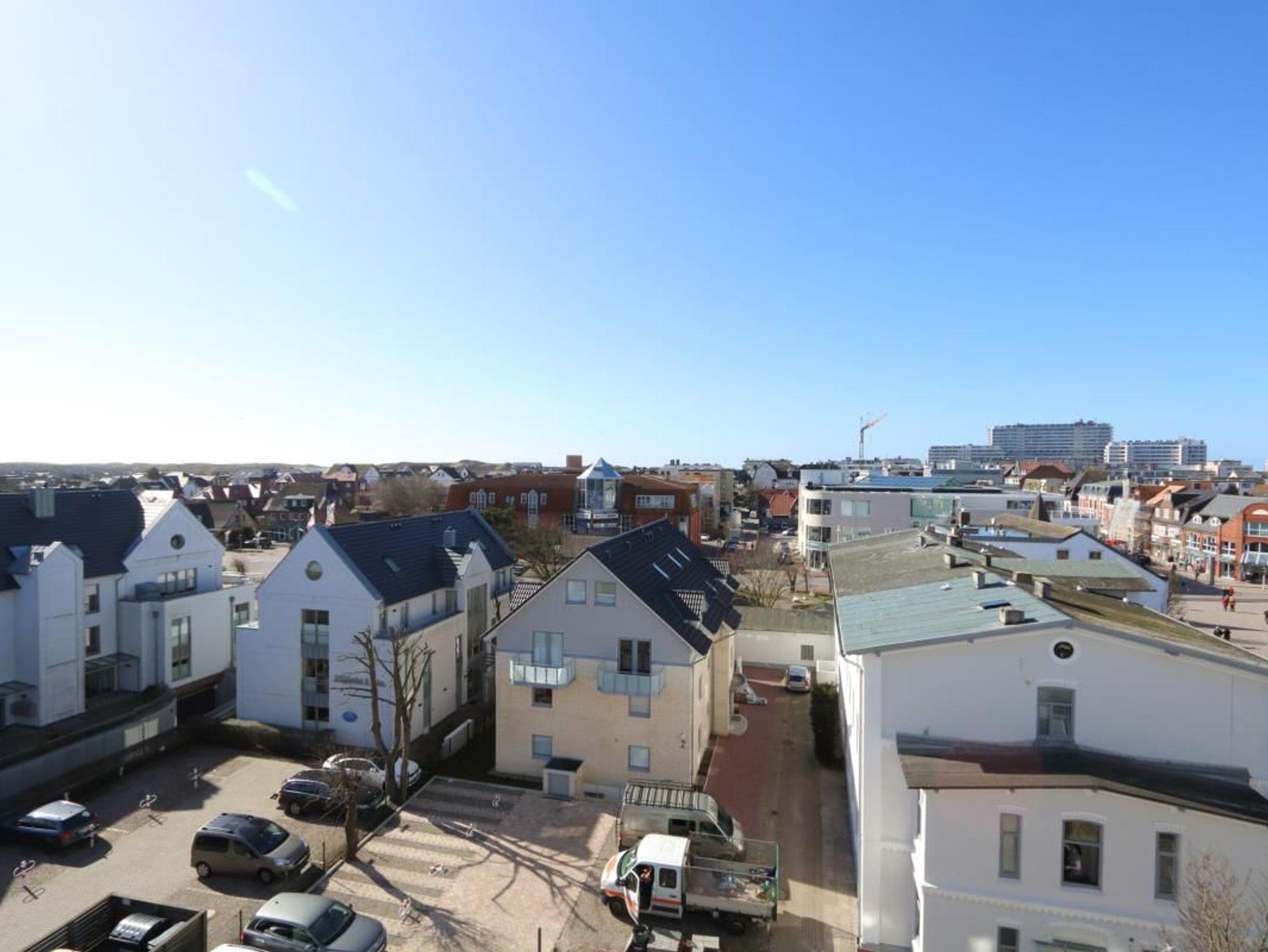 Das Appartementhaus steht an der Fußgängerzone Wilhelmstraße, die in die Friedrichstraße übergeht. Zum Strand sind es ca. 500 m. Das Appartement befindet sich in der 5. Etage mit Blick Richtung Westen.