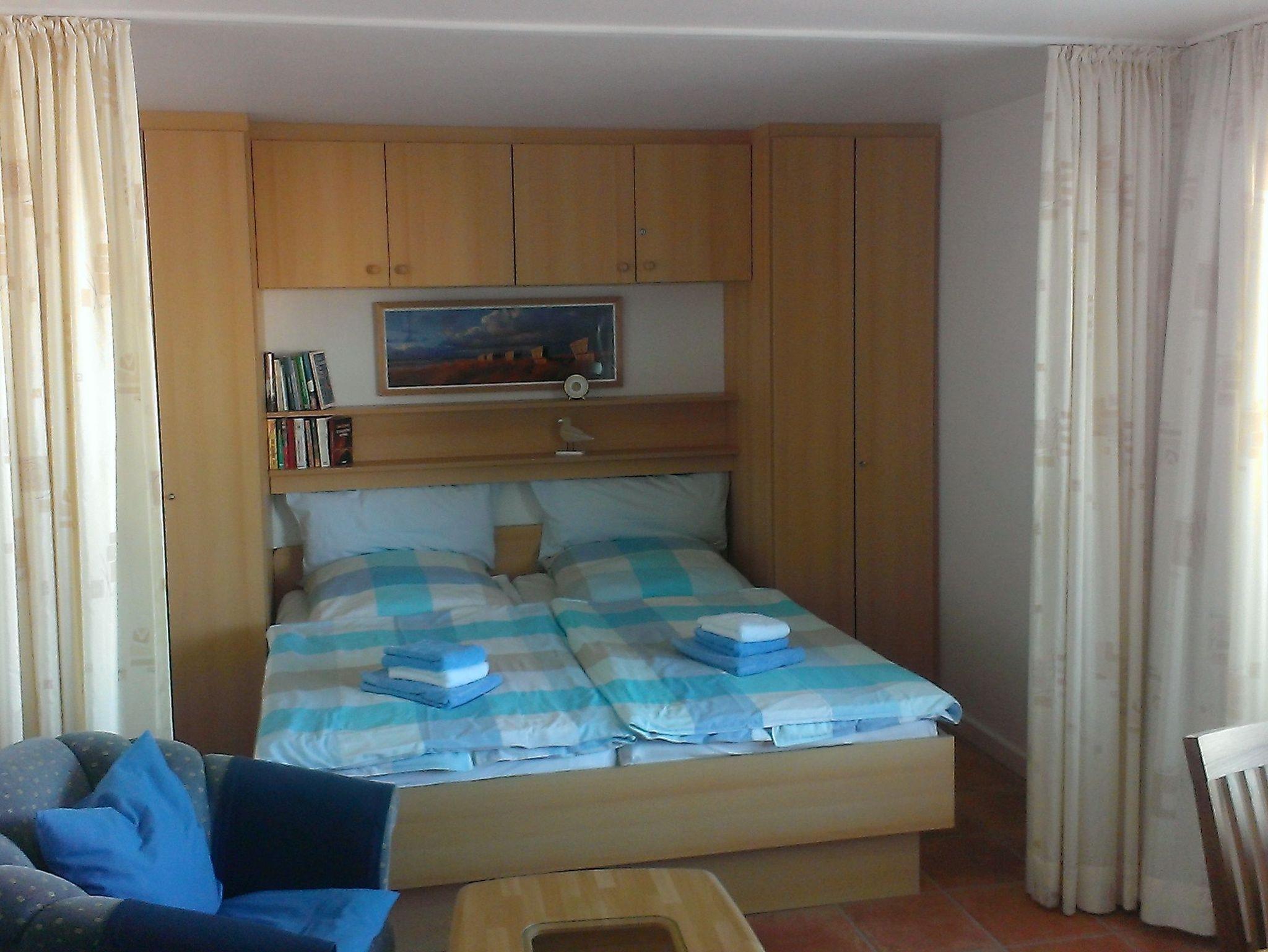 Es handelt sich um eine kleine süße Ferienwohnung von 32 qm, bestehend aus einem großen Wohn-Schlafraum mit Doppelbett (180/200), Flur mit Küchenzeile und einem Badezimmer mit Dusche. Der schöne große Sonnenbalkon (Sonne von morgens bis frühen Nachmittag) runden dieses Schmuckstück ab. Die Wohnung ist liebevoll eingerichtet und wird von den Eigentümern ebenfalls einige Wochen im Jahr genutzt.