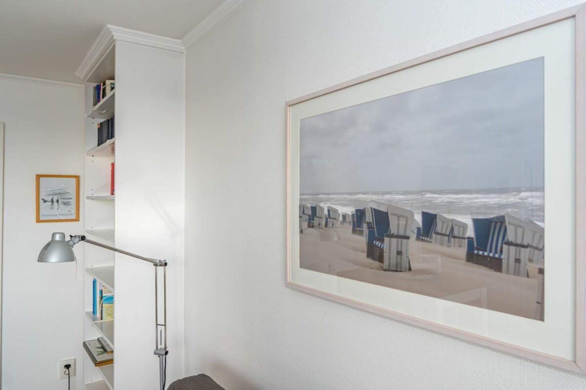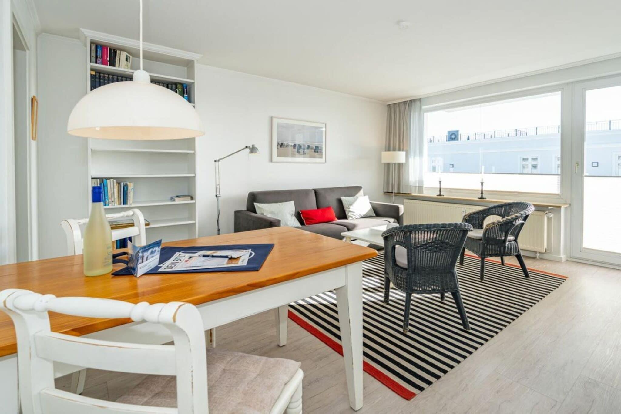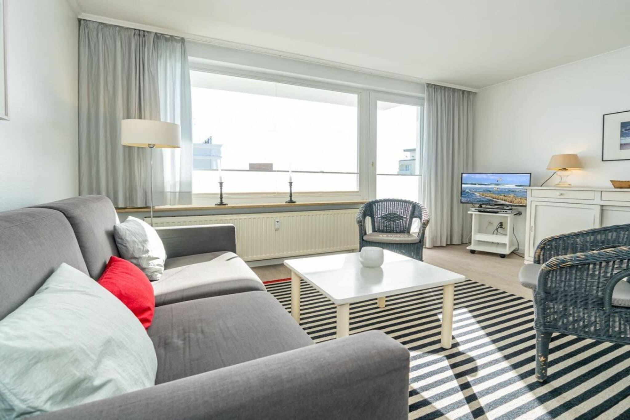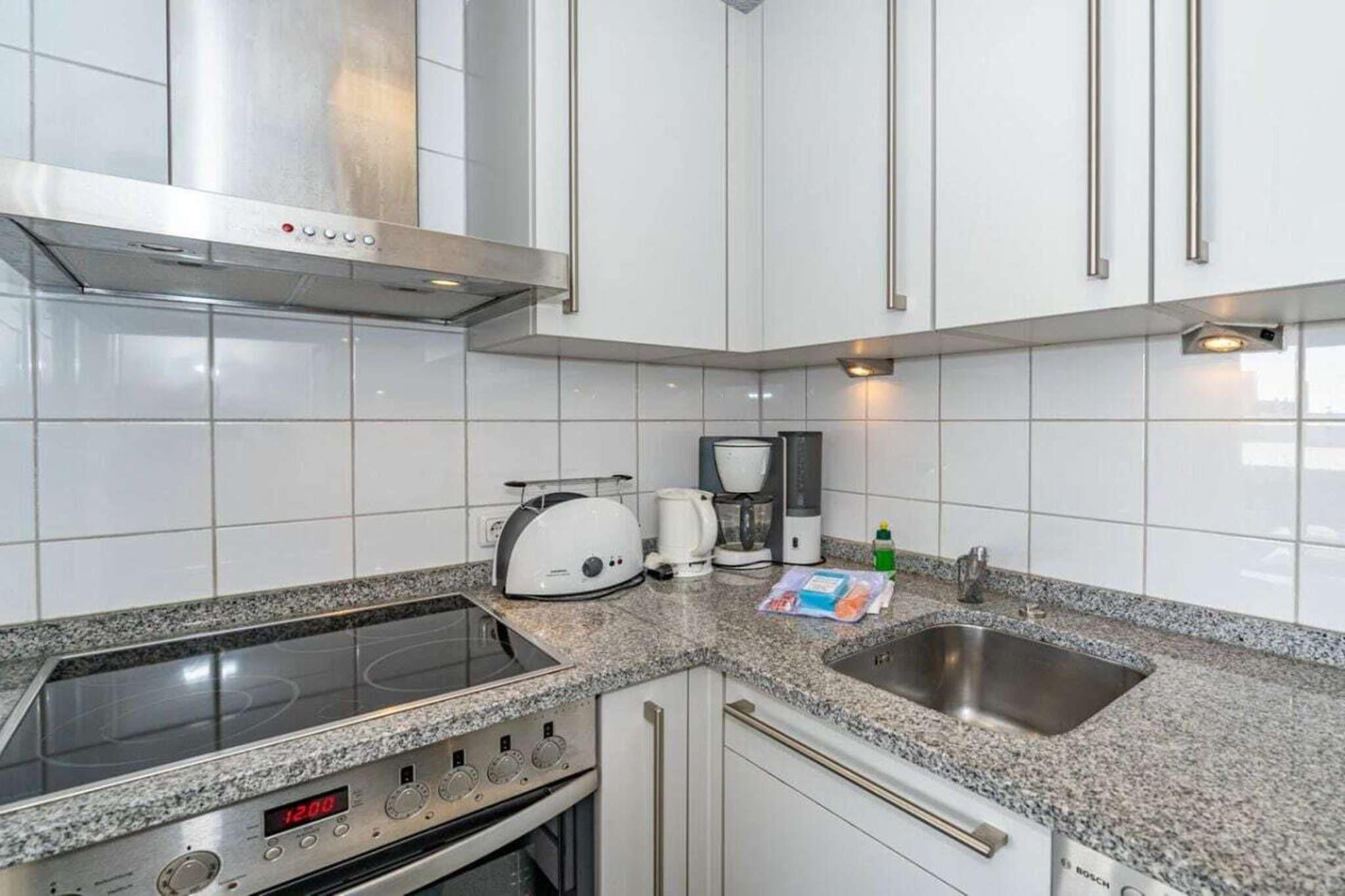 Lejlighed 36, Haus Dünenburg, med plads til 2 personer. Denne 2-værelses lejlighed ligger på 4. sal og har en sydvendt altan. Køkken Indret køkken Opvaskemaskine Keramisk kogeplade med 4 blus Ovn Stue/spisestue Kabel-tv Wi-Fi og tysk fastnettelefon inkluderet (ingen garanti) Stereoanlæg/CD DVD Balkon Soveværelse Badeværelse Garage nummer 36 foran huset Bemærk: Ved kortere bookingperioder bedes du tjekke kalenderen for opfølgende bookinger, når du foretager din forespørgsel.