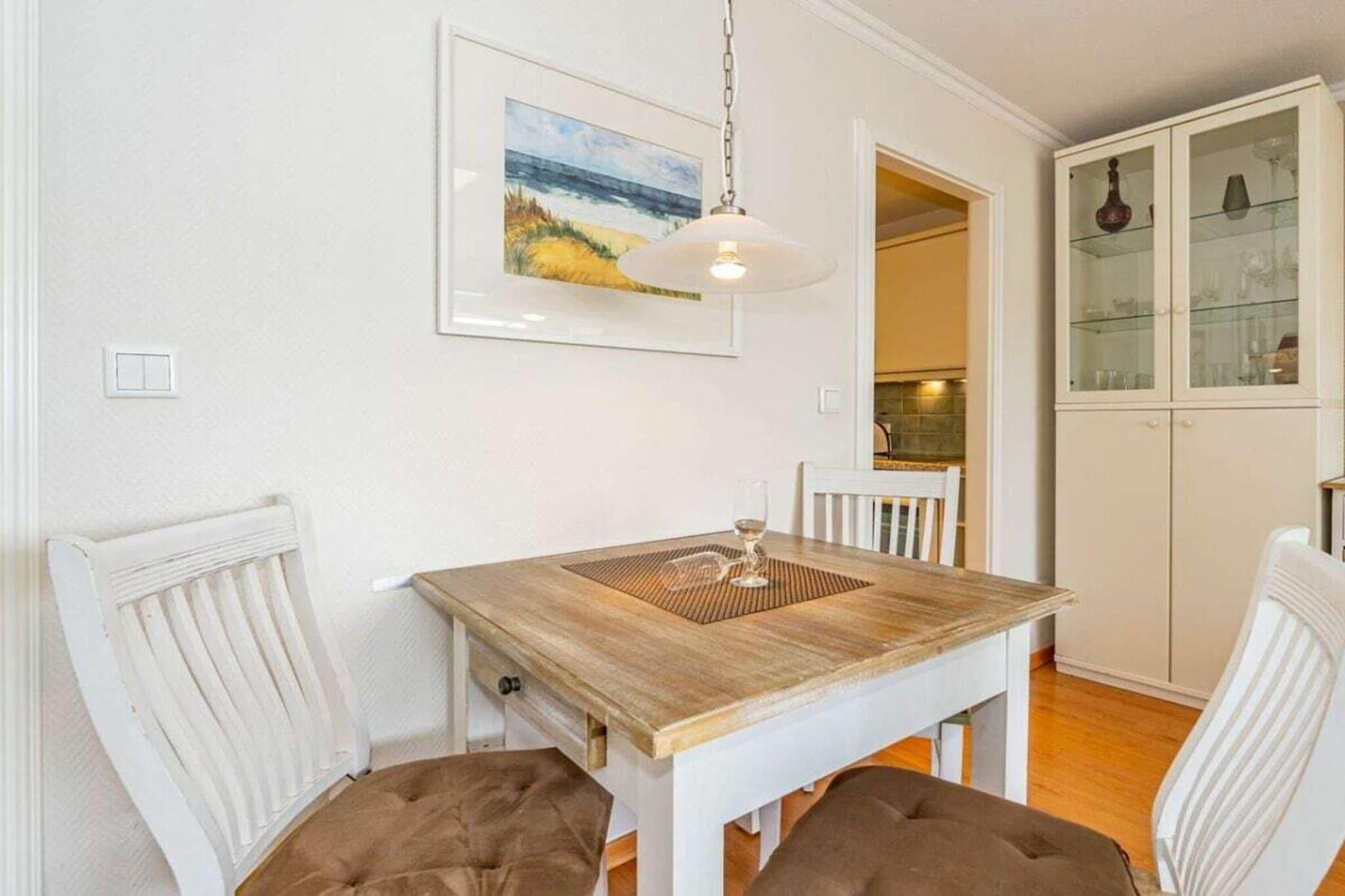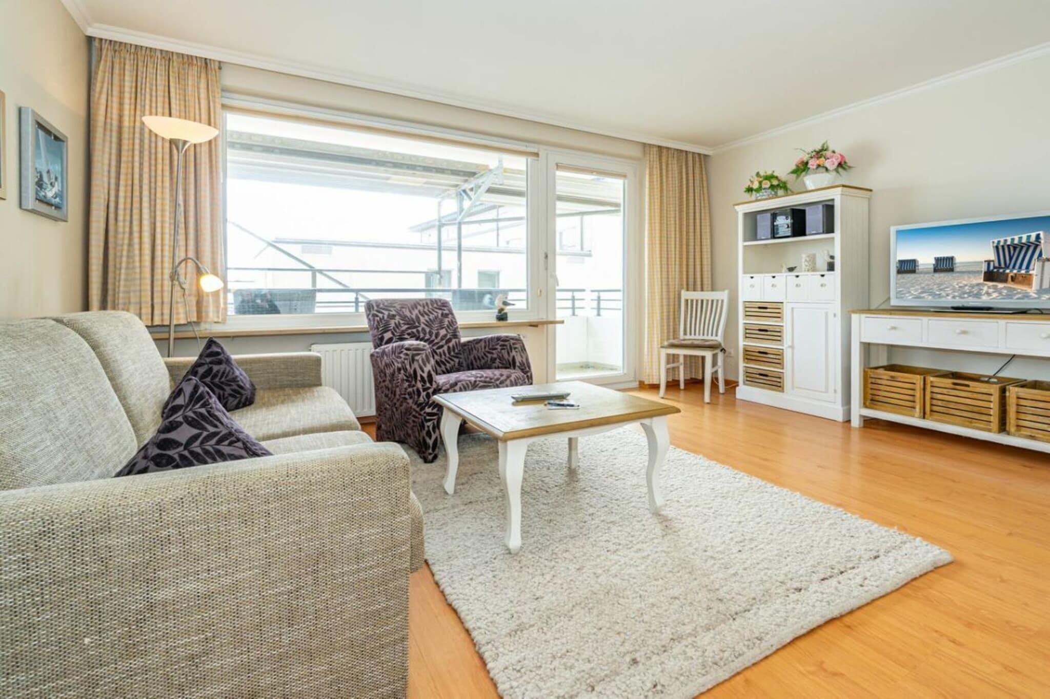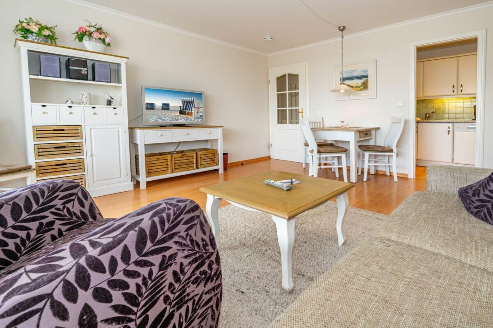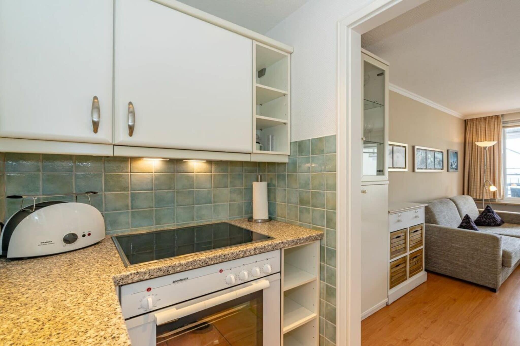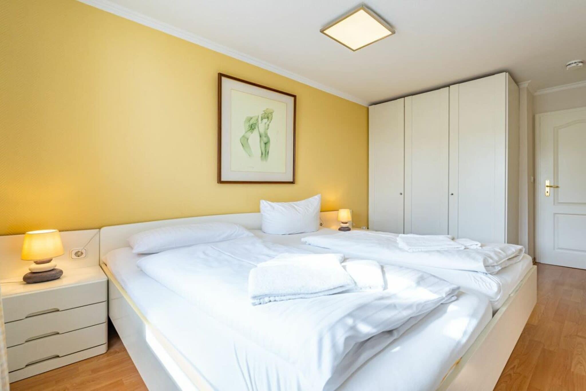 Denne lejlighed med 2 soveværelser ligger på 4. sal og har en sydvendt balkon. Køkkenet er udstyret med opvaskemaskine, keramisk kogeplade med 4 blus og ovn. I stuen/spisestuen kan du finde dig selv komfortabelt i sofaen med kabel-tv. Wi-Fi og fastprisopkald til tyske fastnettelefoner er inkluderet (ingen garanti). Lejligheden har også et soveværelse med dobbeltseng og et brusebad med håndklædetørrer og hårtørrer.