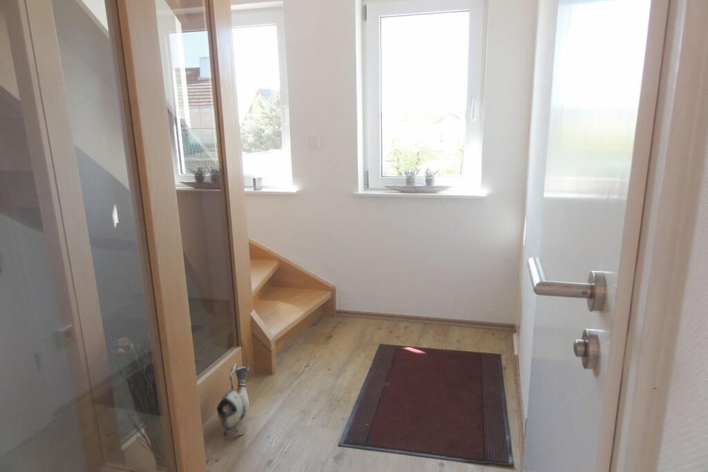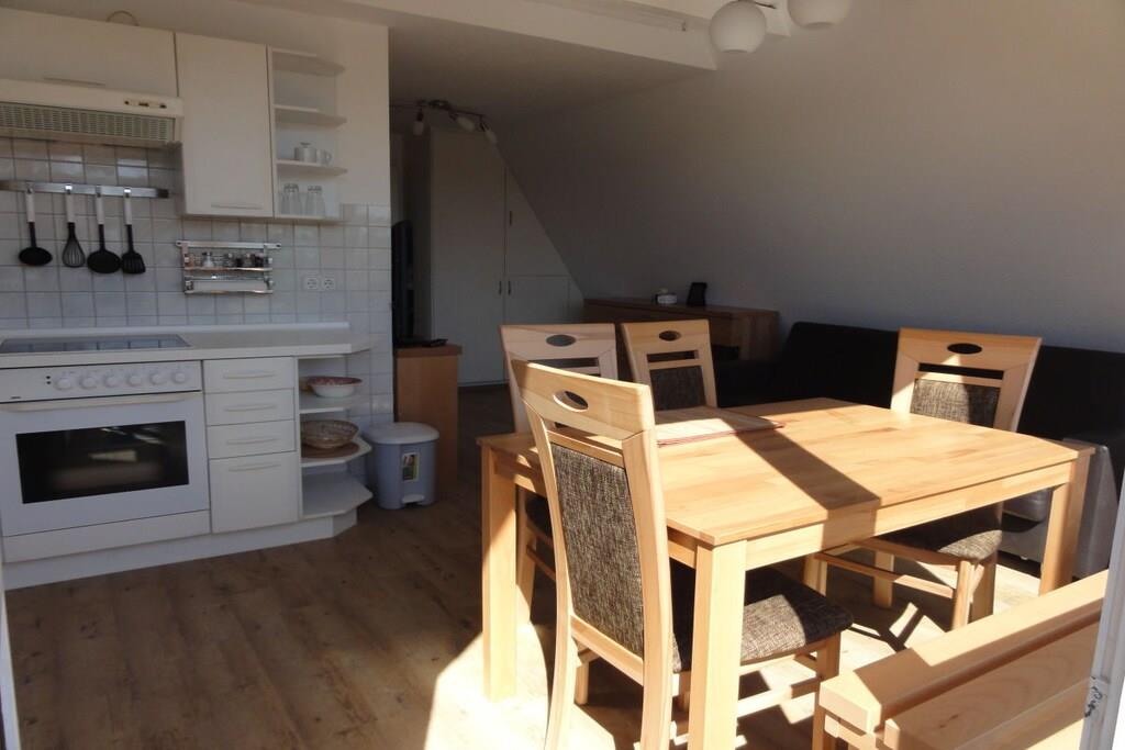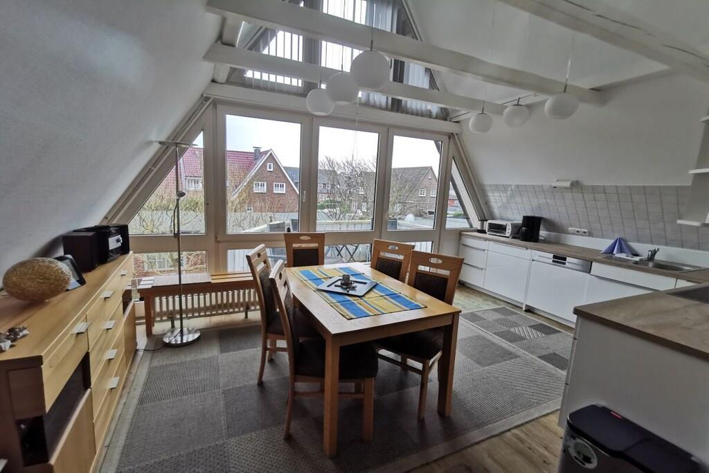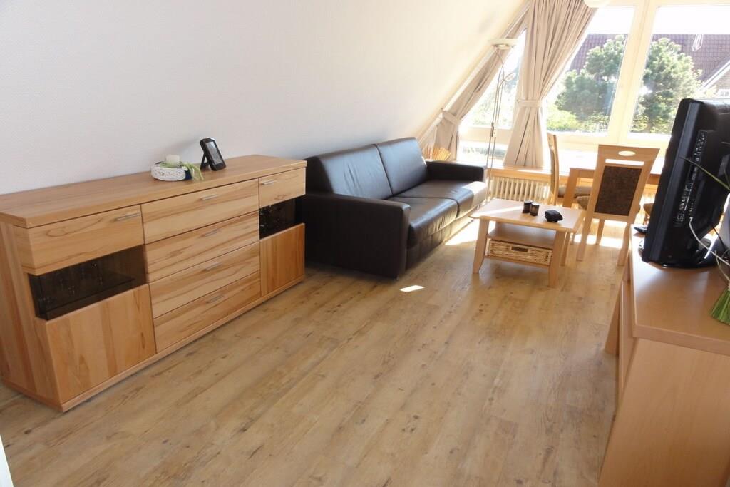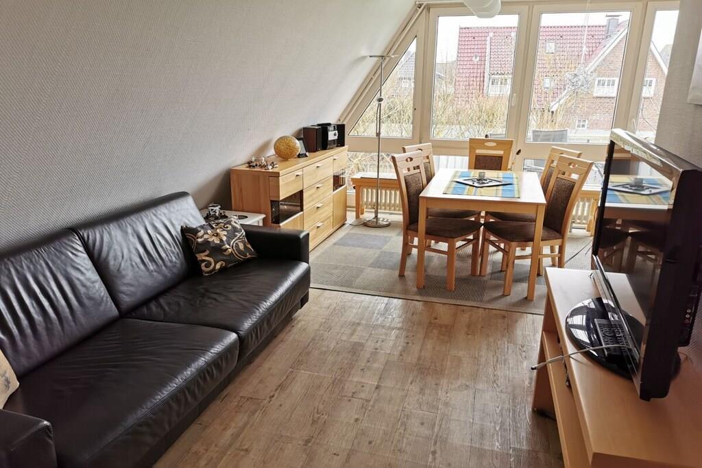 Das Haus Lütje Gaadt 17 c in Westerland befindet sich in unmittelbarer Nähe von der Himmelsleiter. Die "Fewo 4 im OG" - 3 Zi-Fewo im Obergeschoss mit Südbalkon, liegt strand- und stadtnah. Die 3-Raum-Ferienwohnung verfügt über ein Wohnzimmer mit Küchenzeile und besonders leiser Spülmaschine, Backofen und Herd. Im Wohnzimmer befindet sich ein großer LCD-TV und eine hochwertige Messina-Schlafcouch. Zusätzlich ist ein gemütliches Schlafzimmer mit Doppelbett und orthopädischen Kaltschaummatratzen vorhanden. Das Bad verfügt über eineBadewanne, Dusche und WC sowie einen Einbauschrank. Ein Auto wird zwar nicht benötigt, es steht dennoch ein kostenfreier Parkplatz zur Verfügung. Nichtraucherwohnung, Haustiere sind nicht erlaubt. Die letzte Renovierung wurde im Jahr 2011 vorgenommen.