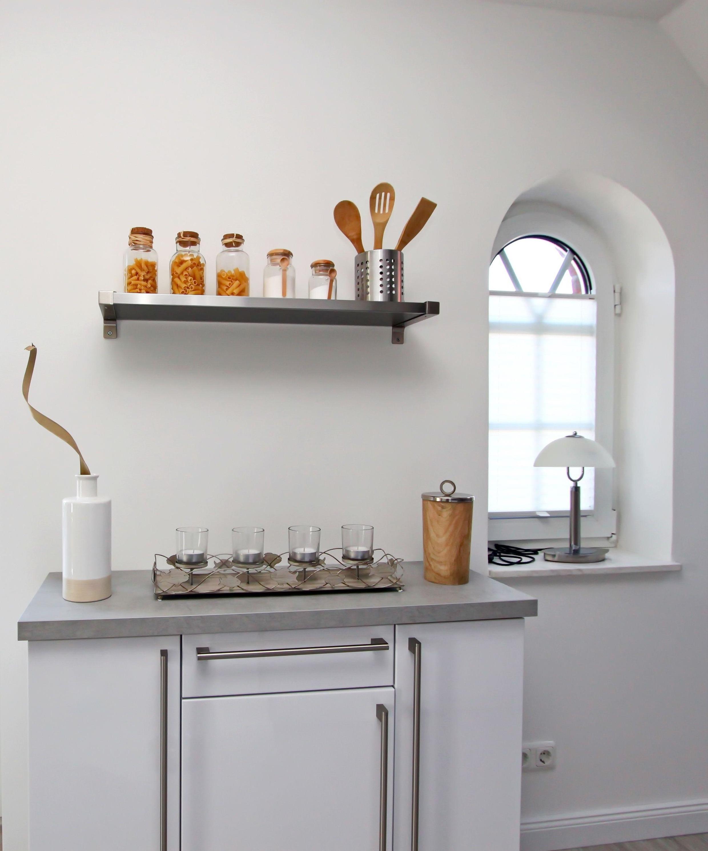 Die moderne Einbauküche wurde offen gestaltet und bietet Ihnen alle Annehmlichkeiten für eine sorgenfreie Selbstversorgung. Hierzu gehören neben dem Backofen und dem Cerankochfeld auch ein Kühlschrank mit Gefrierfach und ein Geschirrspüler.