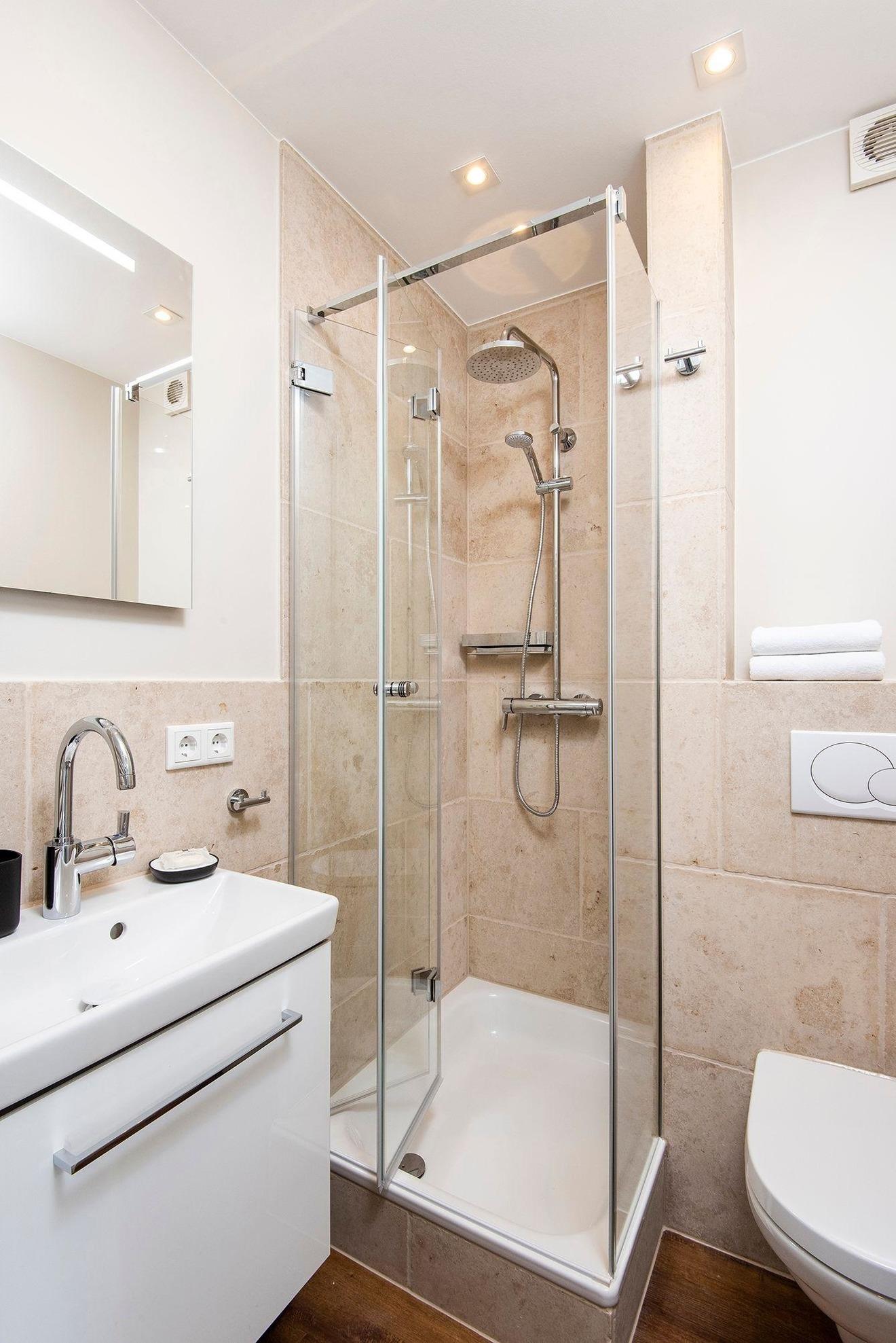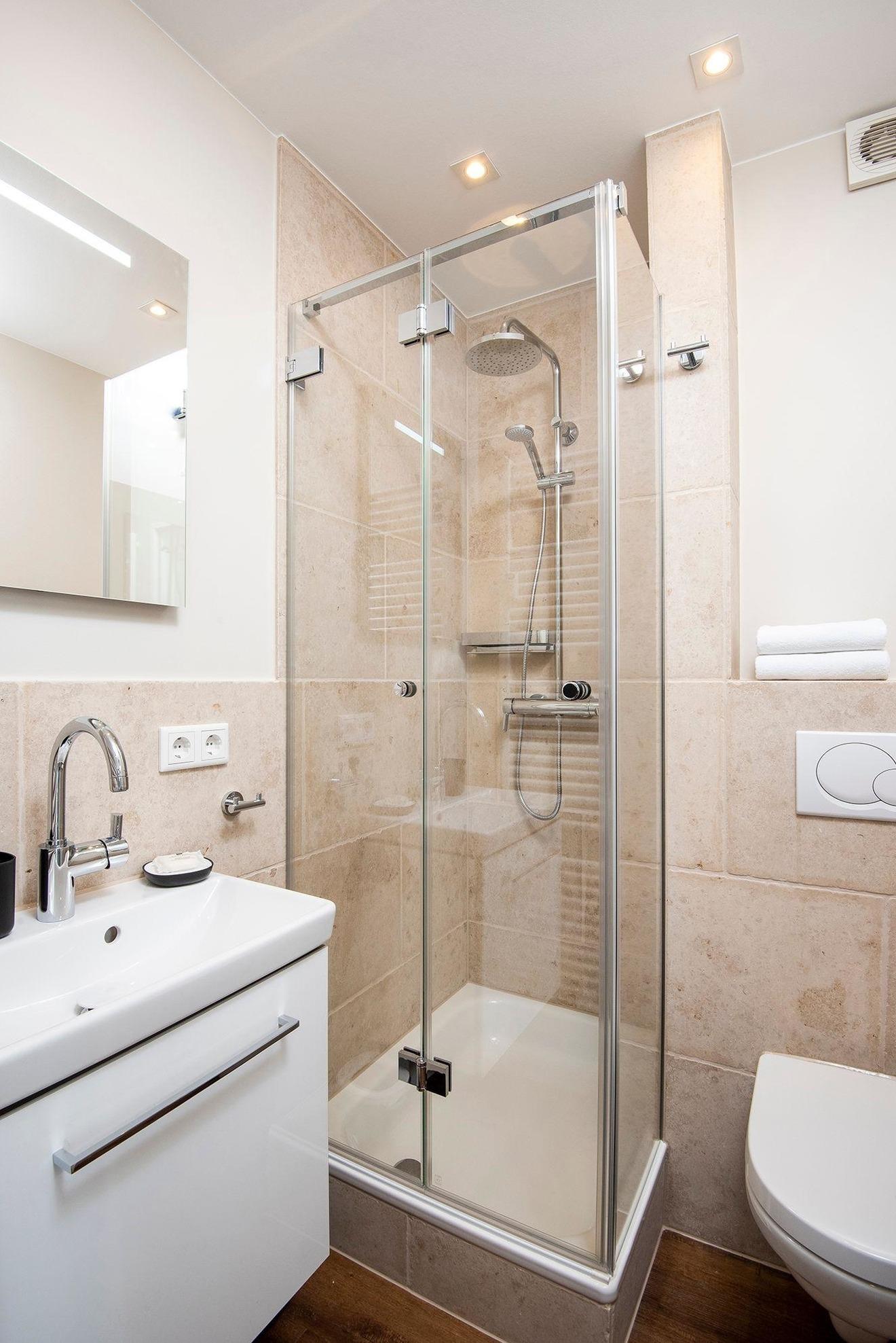 Das 1-Zimmer-Appartement ist geeignet für 1 bis 2 Personen. Das komplette Appartement wurde im Jahr 2021 Kernsaniert und mit hellen hochwertigen Tischlereinbauten versehen. Eine moderne offene Einbauküche aus dem Hause Siemens lässt kaum Wünsche offen. Diese beinhaltet 2 Platten Herd, Spülmaschine, Mikrowelle, Kühlschrank, Kaffeemaschine, Toaster und Wasserkocher. Das Bad ist mit hochwertigen Natursteinfliesen, maßgefertigter Duschabtrennung aus Glas und Rain Shower Brause ausgestattet.