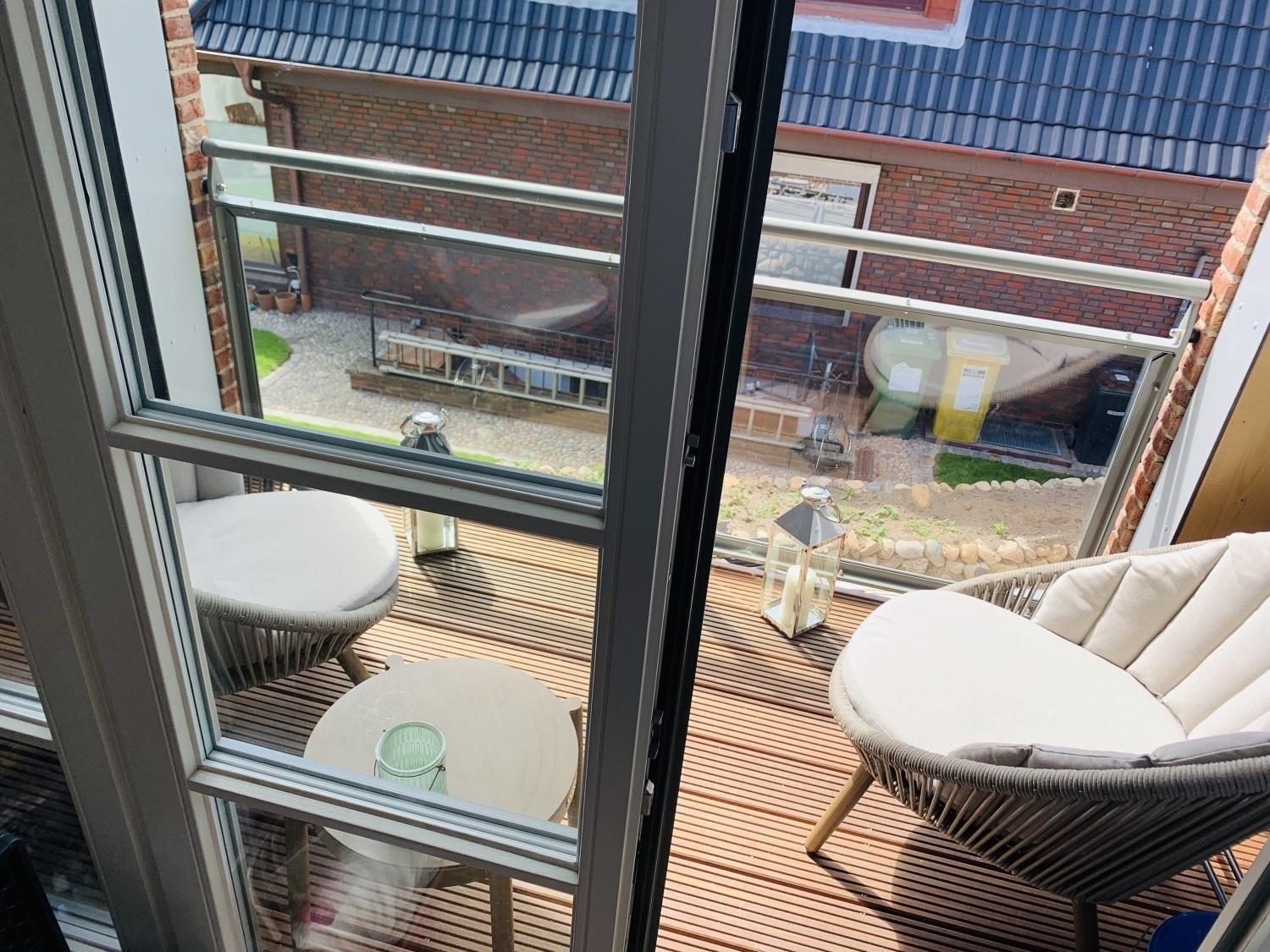 Der kleine, gemütliche Balkon bietet Ihnen die Möglichkeit entspannt an der frischen Luft zu Verweilen. Auch hier im Außenbereich wurde Wert auf eine moderne und komfortable Möblierung gelegt, so dass der Freisitz zu lauschigen Abenden einlädt.