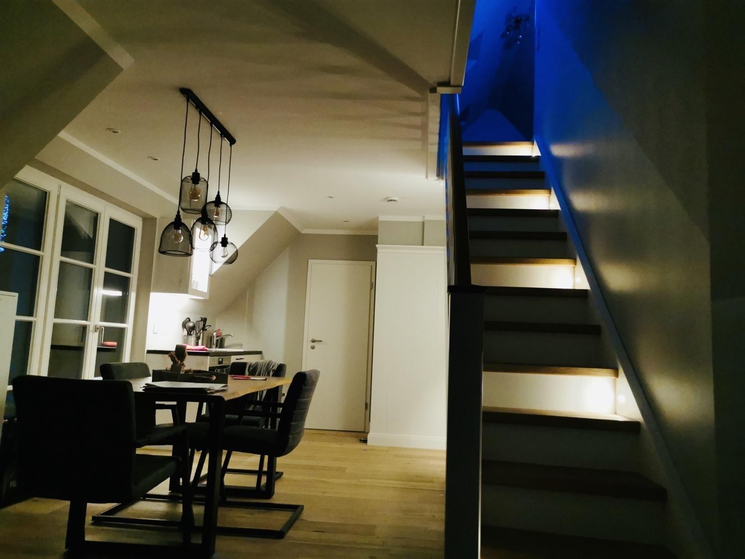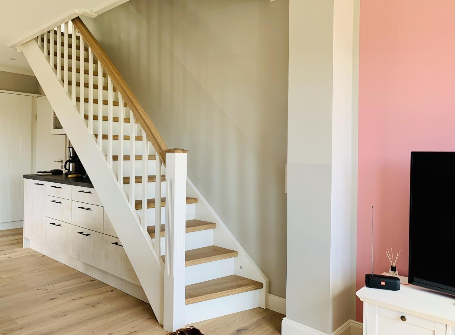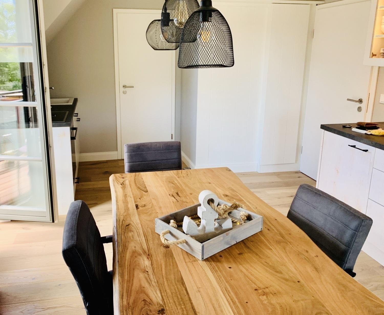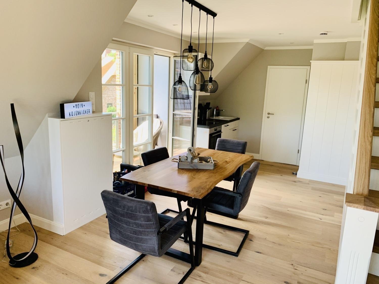 Die Ferienwohnung Kojenkieker befindet sich im Obergeschoss und begrüßt Sie mit einem hellen Flur welcher Sie in den Wohn- und Essbereich, in das Schlafzimmer sowie in das Badezimmer mit Dusche führt.