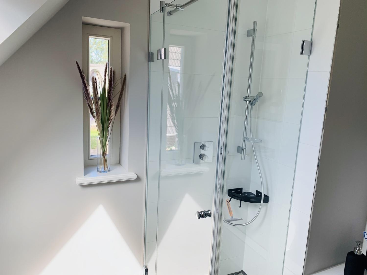 Das moderne Badezimmer mit Fenster bietet ebenfalls genügend Platz für den täglichen Gebrauch.