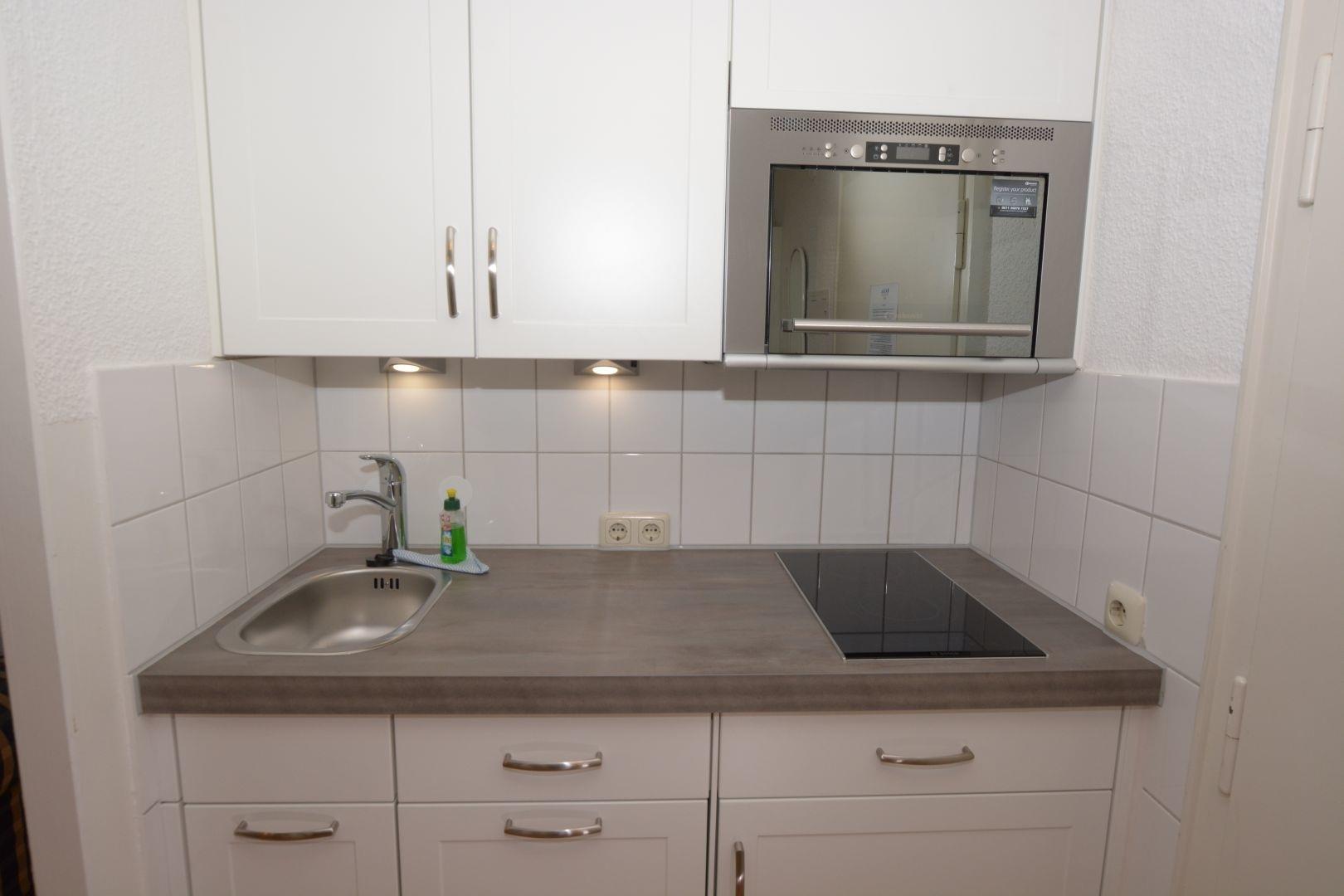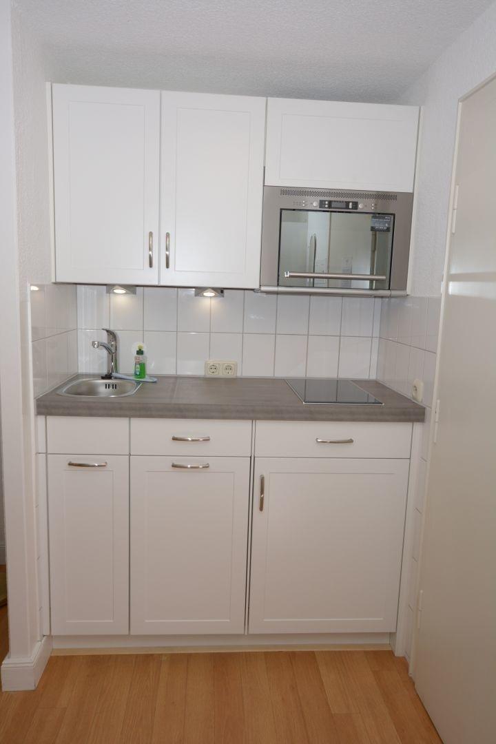 Die Wohnung ist ca. 34 qm groß und befindet sich in der 2. Etage. Im Eingangsbereich befindet sich eine neue kleine, weiße Küchenzeile mit 2-Cerankochfeldern, Mikrowelle mit Grill, Geschirrspüler und Kühlschrank. Das Duschbad ist weiß gefliest und hat ein hübsches, marmoriertes Waschbecken und einen schwarz/weißen Fußboden (gefliest). Im gut eingerichteten Wohnraum steht eine weiße Appartementwand mit ausklappbaren Betten, eine gemütliche Zweiercouch, ein Sessel, ein Glastisch und ein Flachbildfernseher an de Wand hängend runden das Bild ab. Durch die Verdunklungsplissees ist für einen erholsamen Schlaf gesorgt. Im Haus steht Ihnen ein offenenes WLAN-Netz (ohne Gewähr) zur Verfügung. Ein Essbereich für 2 Personen ist ebenfalls vorhanden.