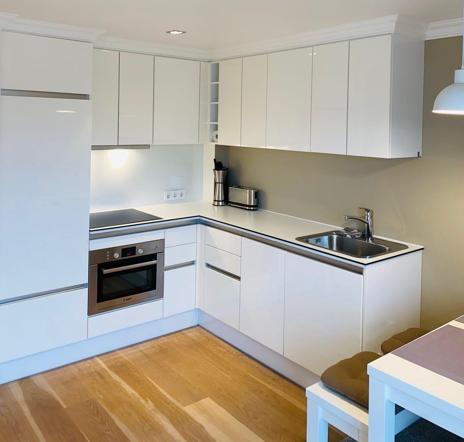 Die hübsche, modern ausgestattete Ferienwohnung bietet auf 50 Quadratmetern reichlich Platz für den Urlaub zu zweit oder als kleine Familie. Der offen gestaltete Wohnraum verbindet gemütliche Polstermöbel mit einer offenen, gut ausgestatteten Küchenzeile. Ein Essplatz ergänzt den Raum stimmig. Vom Wohnraum aus haben Sie Zugang zur möblierten Loggia des Appartements.