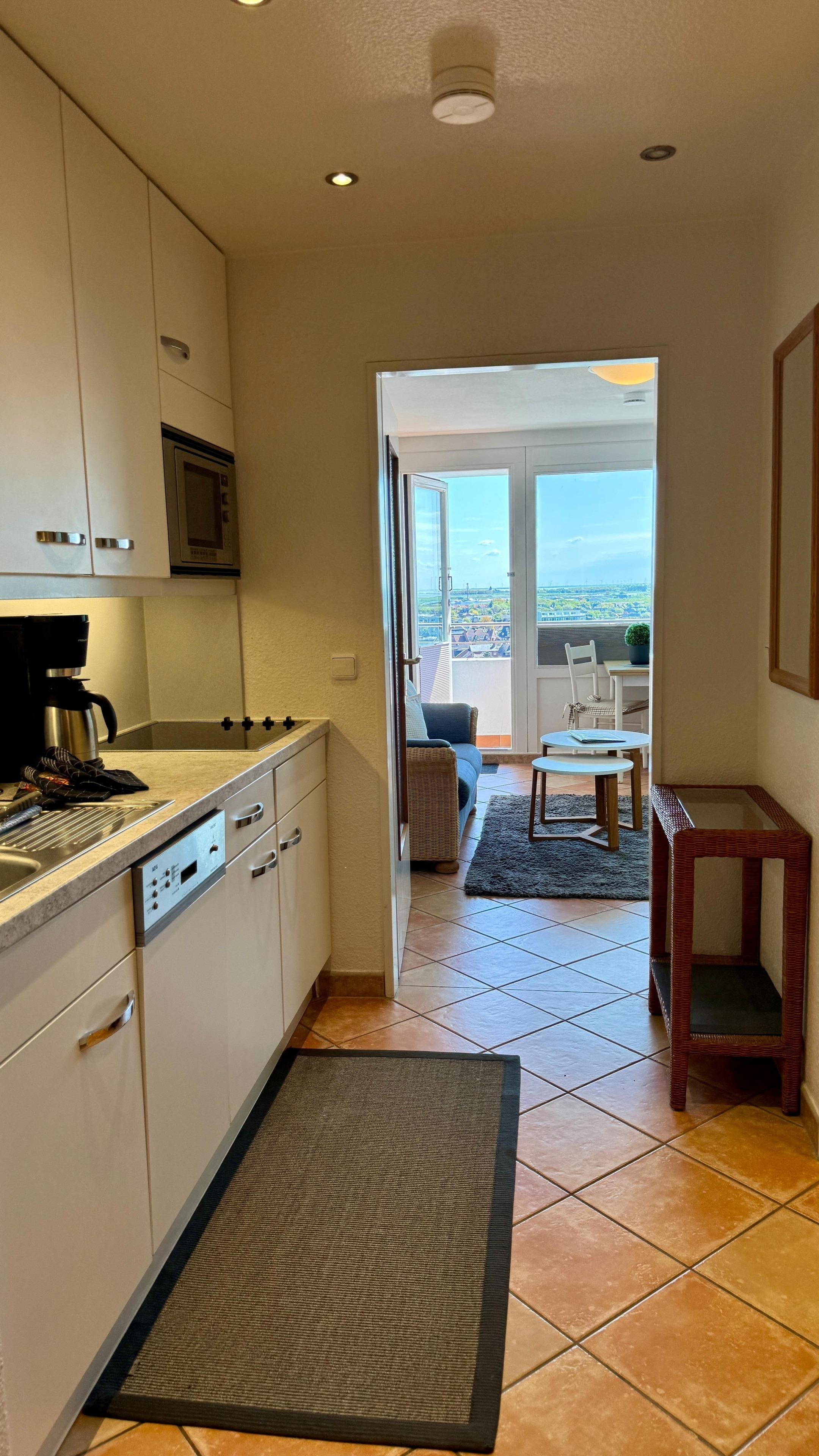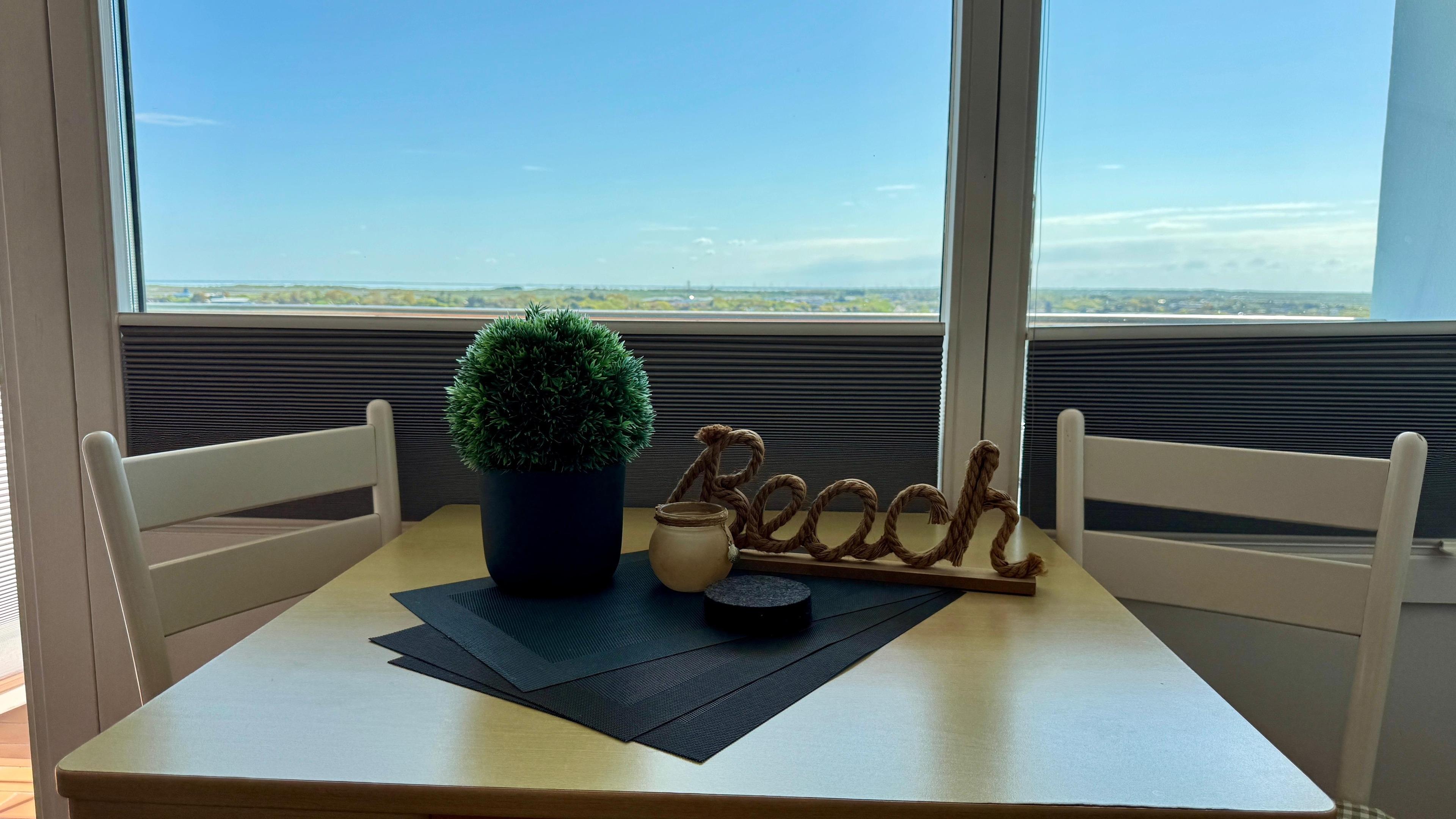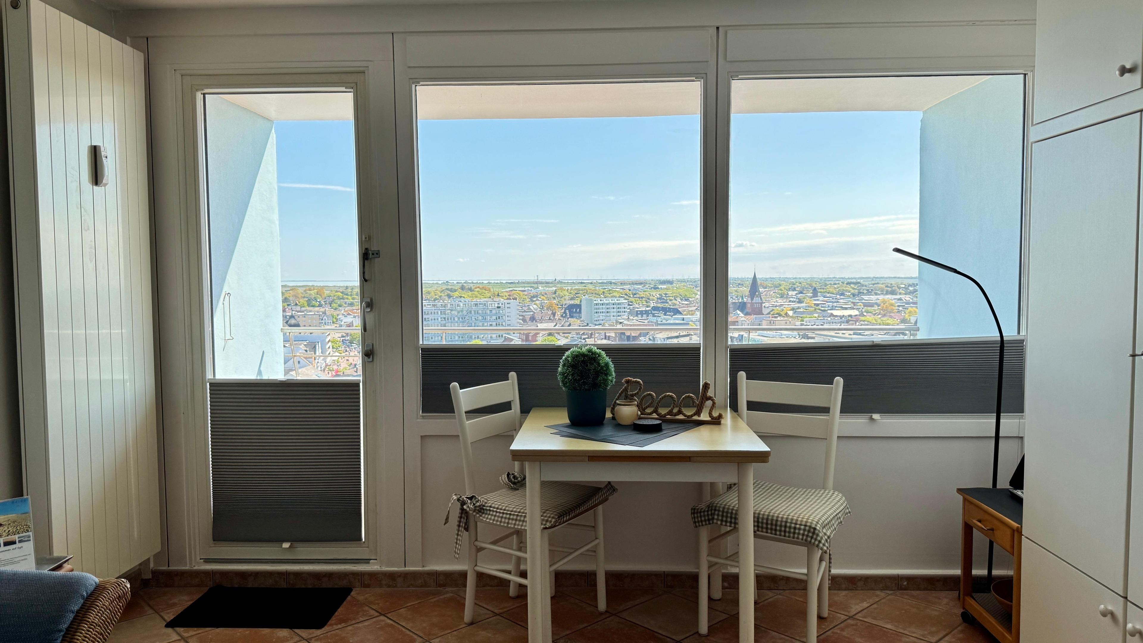 Das helle, freundliche 1-Raum-App. befindet sich in der 10. Etage des Hauses "Metropol" ist ca. 34 m² groß.Vom Balkon hat man einen tollen Blick über die Insel und bis zum Festland.Sie gelangen dirkt vom Haus zum Strandübergang des Hauptstrandes. Mit WLAN