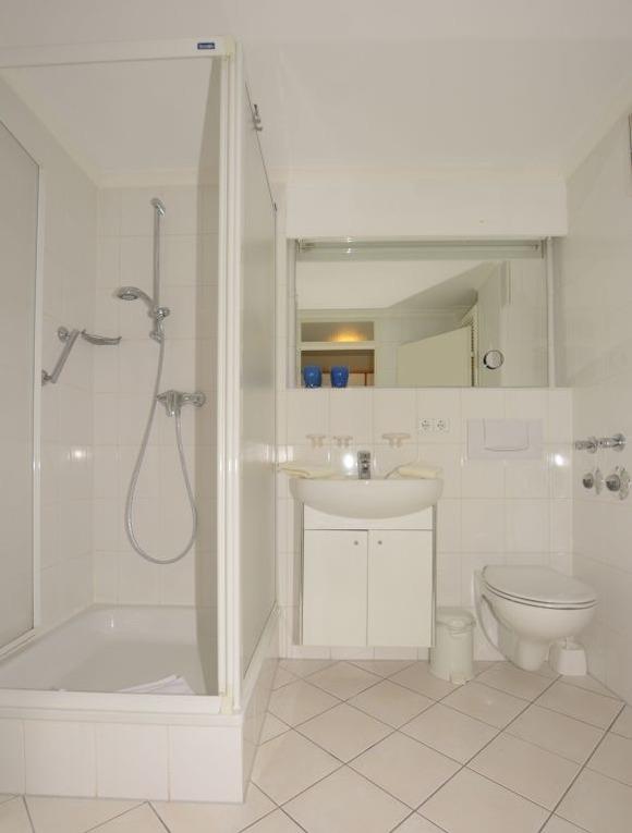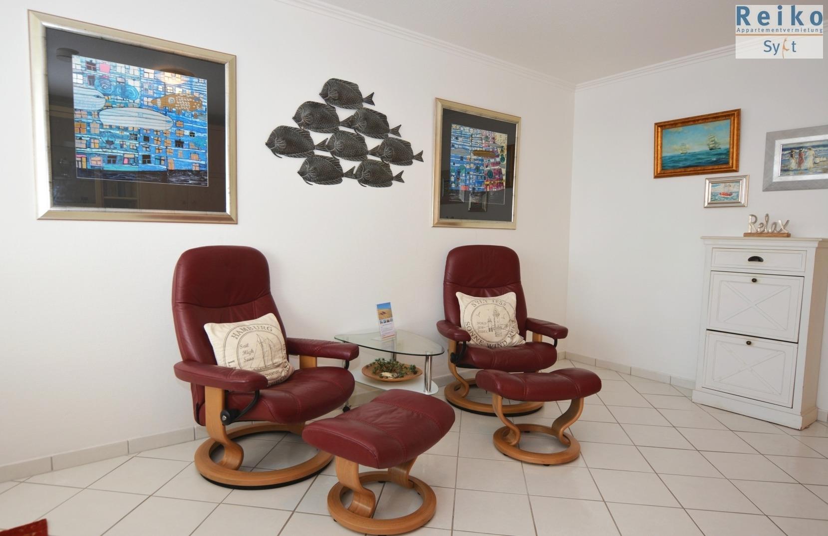Es besitzt eine vollausgestattete, separate Küche im Eingangsbereich, mit einer Mikrowelle, Cerankochfeld und Kühlschrank, sowie ein weiß gefliestes Duschbad. Im gemütlich eingerichteten Wohnraum können Sie auf den Relax-Sesseln, mit Liegefunktion und Fußhocker, einen gemütlichen Abend verbringen. Eine Appartementwand mit einzeln ausklappbaren Betten, sowie Kabel-TV und eine Stereoanlage sind vorhanden. Die Wohnung ist komplett mit hellen Fliesen ausgestattet. Internet via WLAN (ohne Gewähr). Kleine Hunde sind erlaubt.