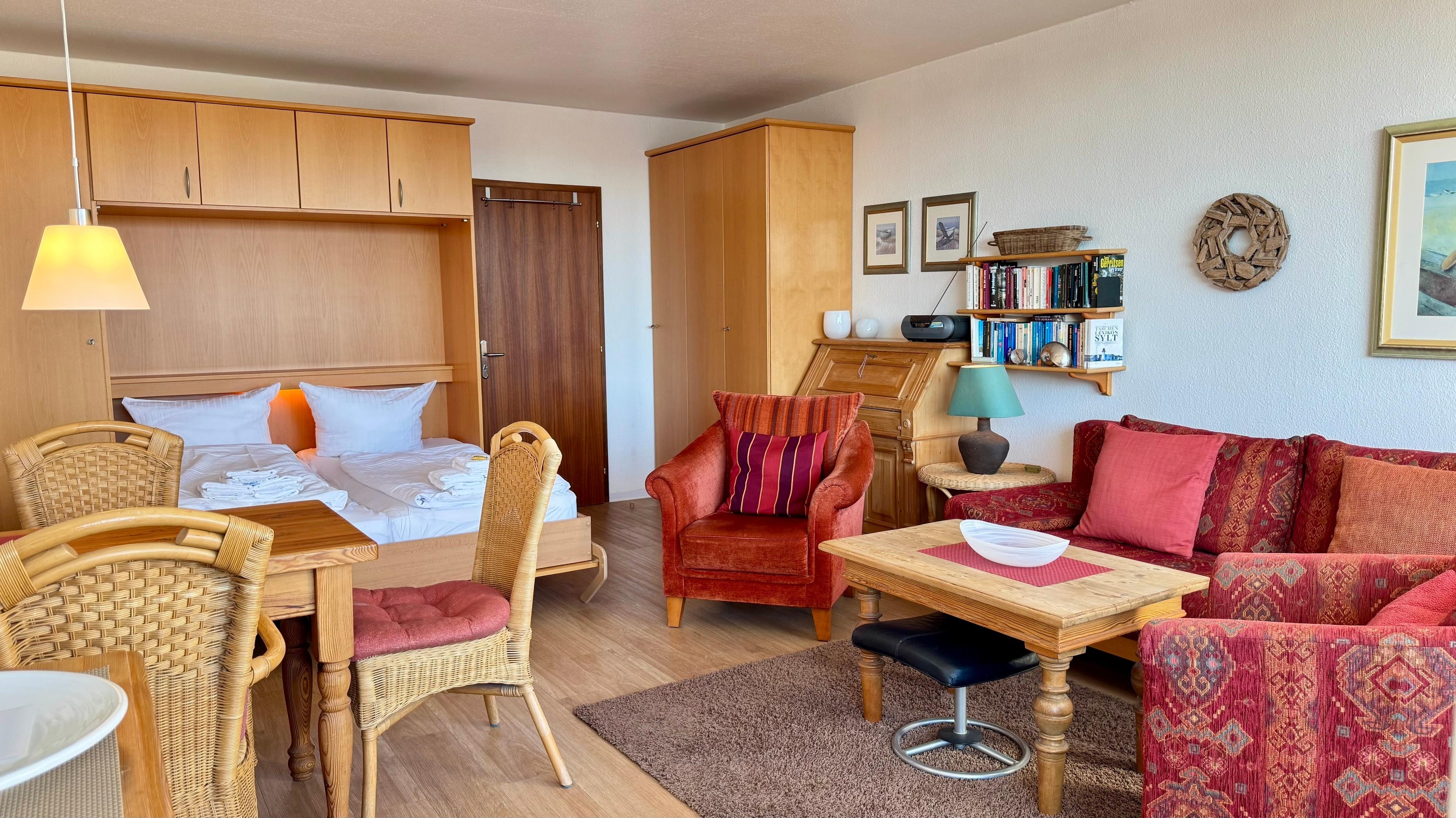 Das Appartement 141-15 ist eine 1-Zimmer-Wohnung mit WLAN und hat ca. 38 qm. Es liegt in der 1. Etage des Hauses "Arius" in der Bismarckstrasse 36.