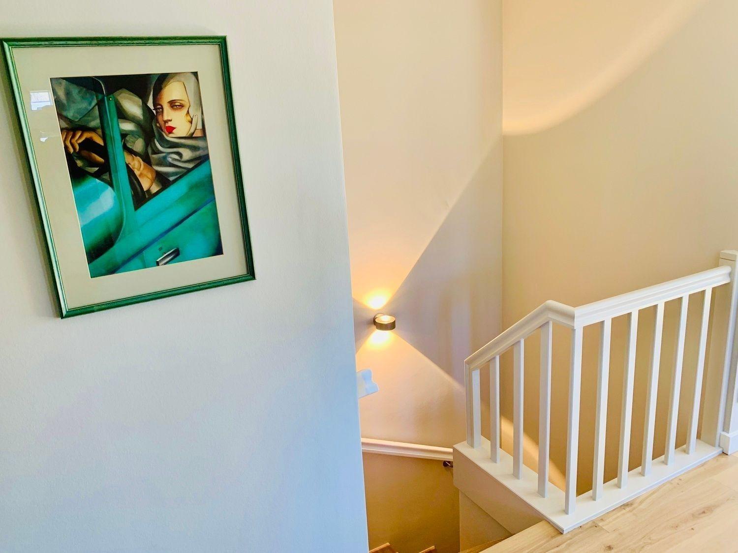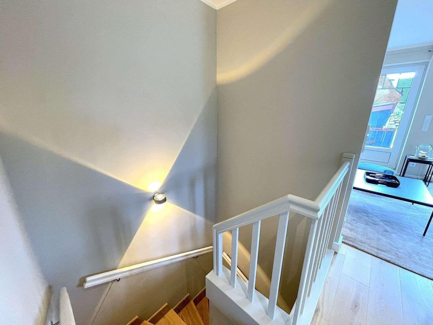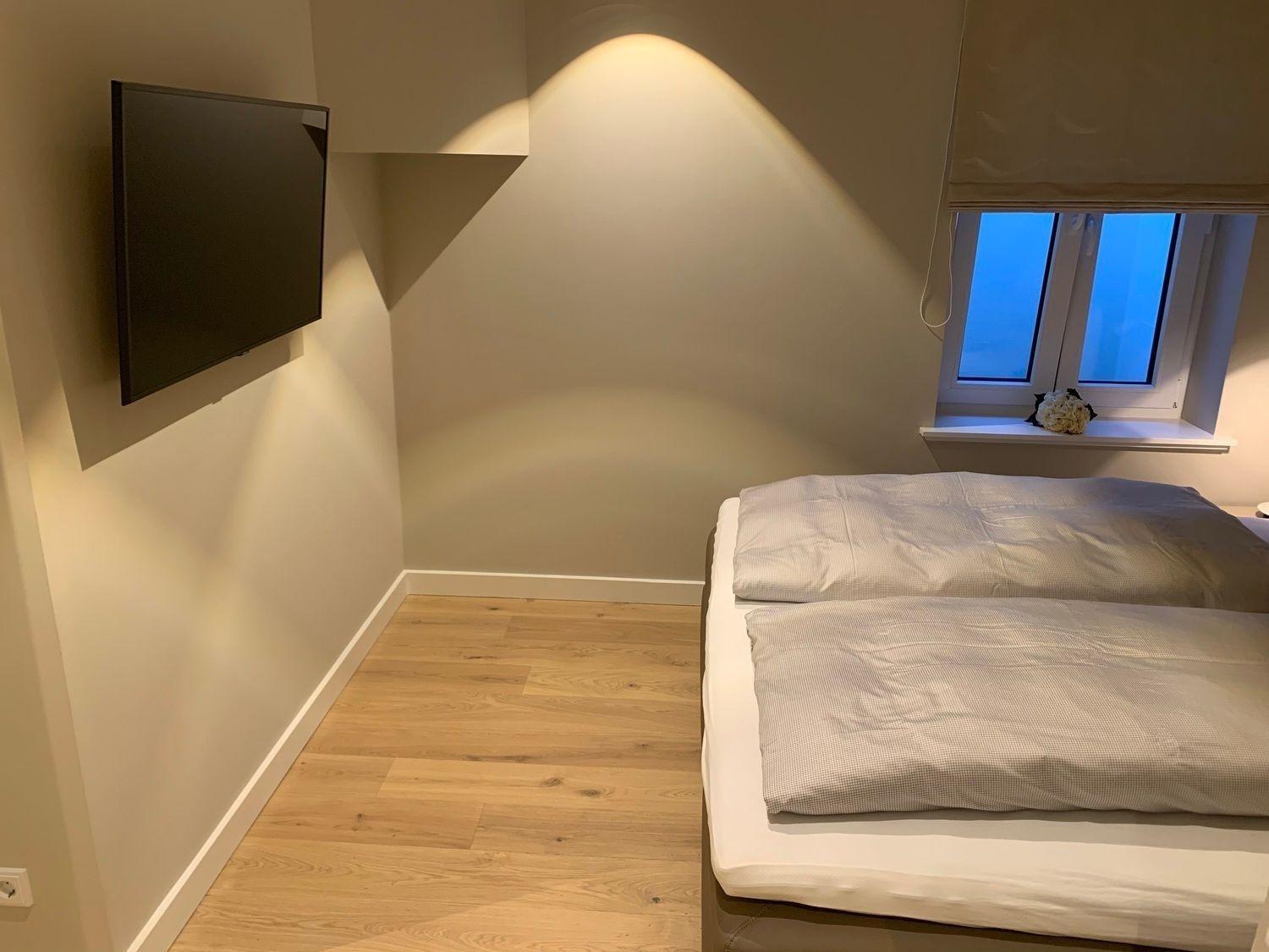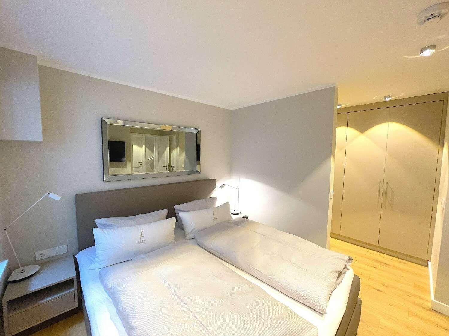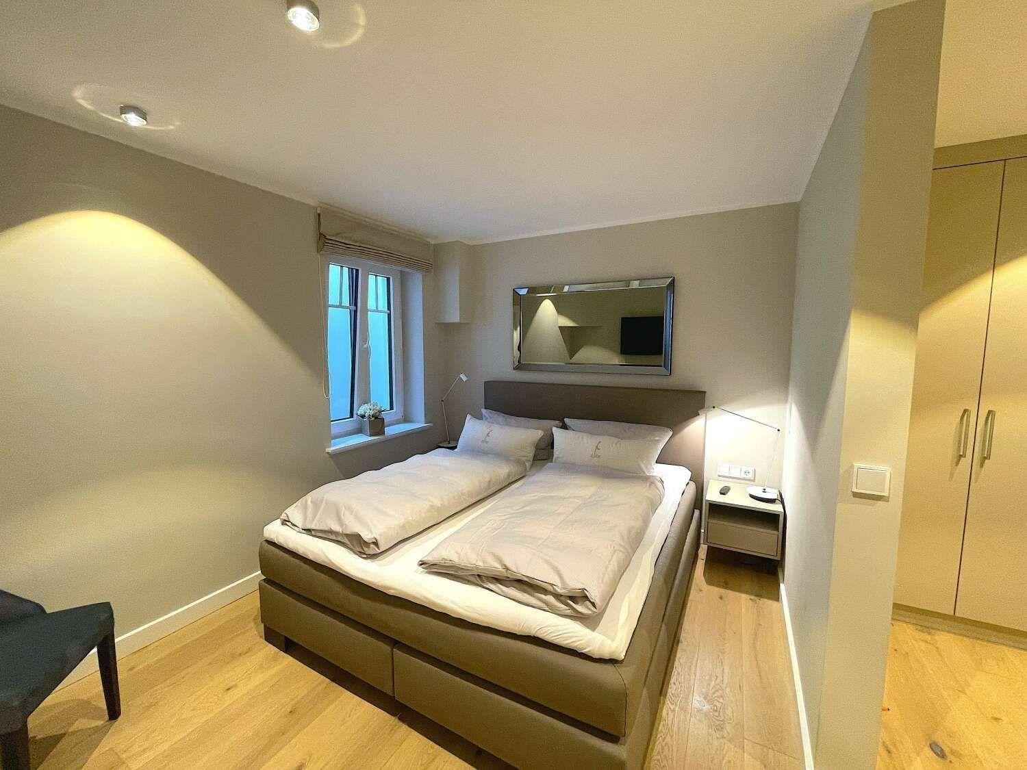 Durch die interne Treppe erreichen Sie die beiden großzügig eingerichteten Schlafzimmer mit jeweils einem komfortablen Boxspringbett, sowie ein großes belichtetes Bad mit Dusche.