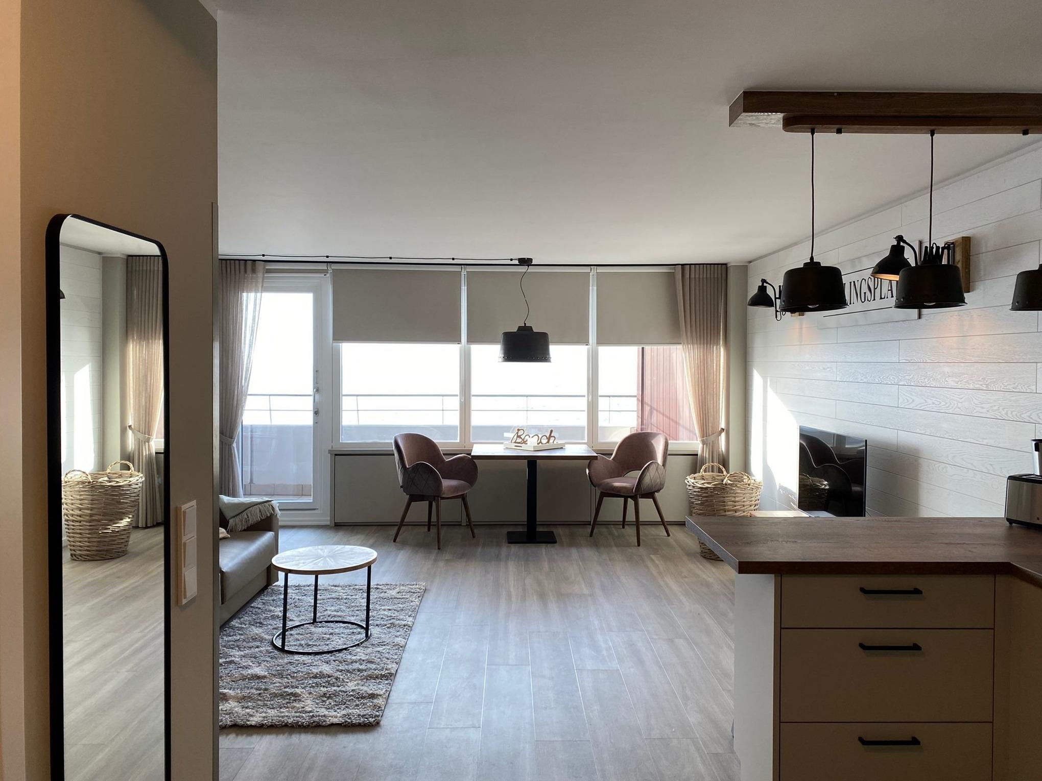 Diese exklusive 1-Raum-Wohnung befindet sich in der 3. Etage des Hauses Metropol zur Seeseite und ist ca. 43 qm groß. das Appartement wurde im Februar 2022 komplett entkernt und neu gestaltet. Im Wohnbereich ist ein Vinylboden ausgelegt.