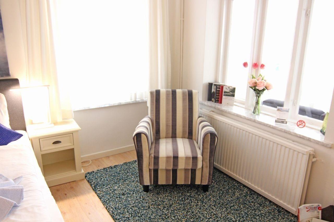 Das Zimmer ist unterteilt in ein Schlafzimmer mit verstellbaren Betten, zwei gemütlichen Lesesesseln, Kleiderschrank. Das zweite Zimmer verfügt über ein Schlafsofa, Esstisch für 3Personen, TV, freies Wlan.