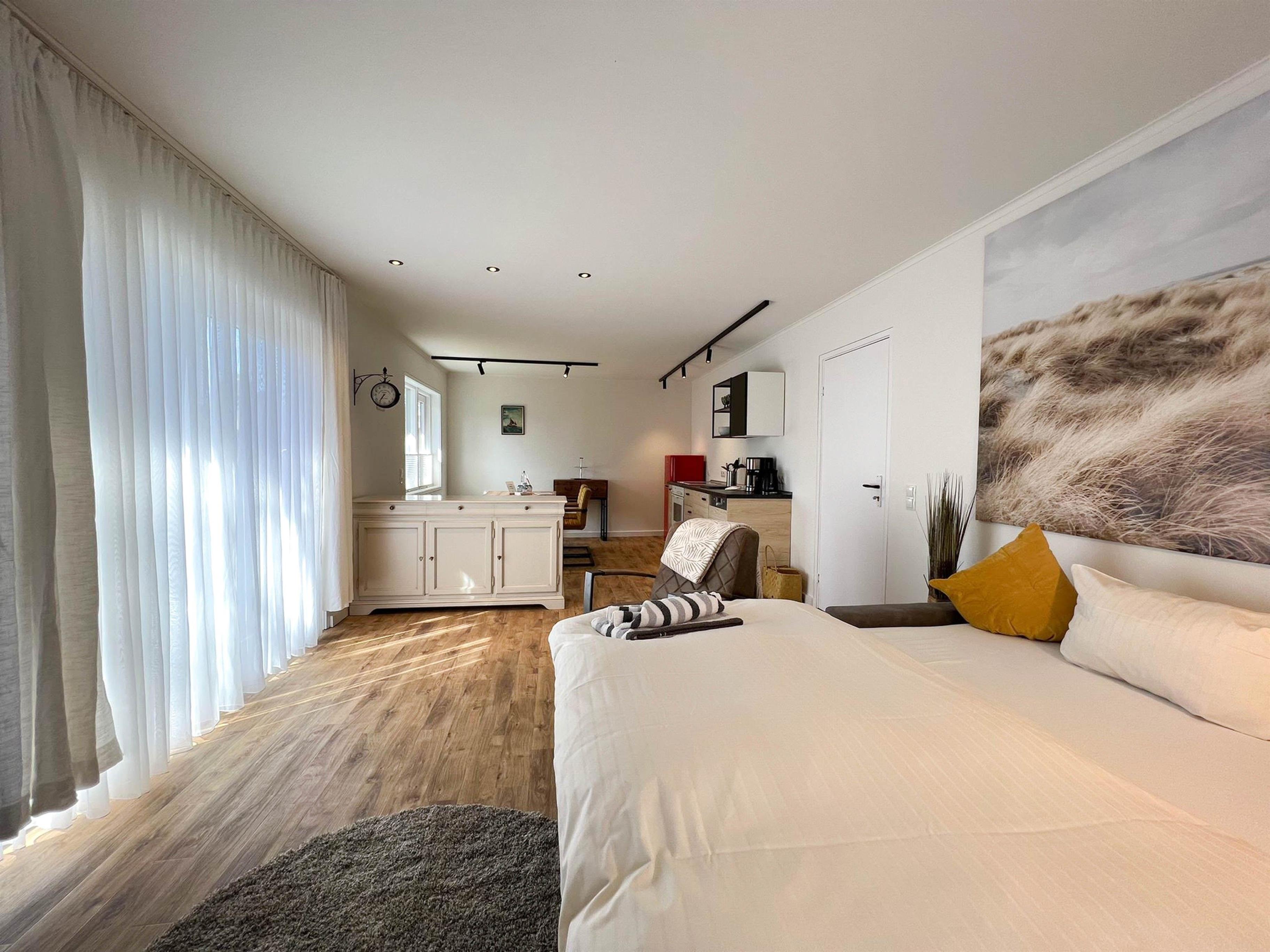 Das großzügige 2 Raum Appartment liegt im "Lillehüs" im Erdgeschoss. Es hat zwei möblierte Terrassen & Strandkorb.