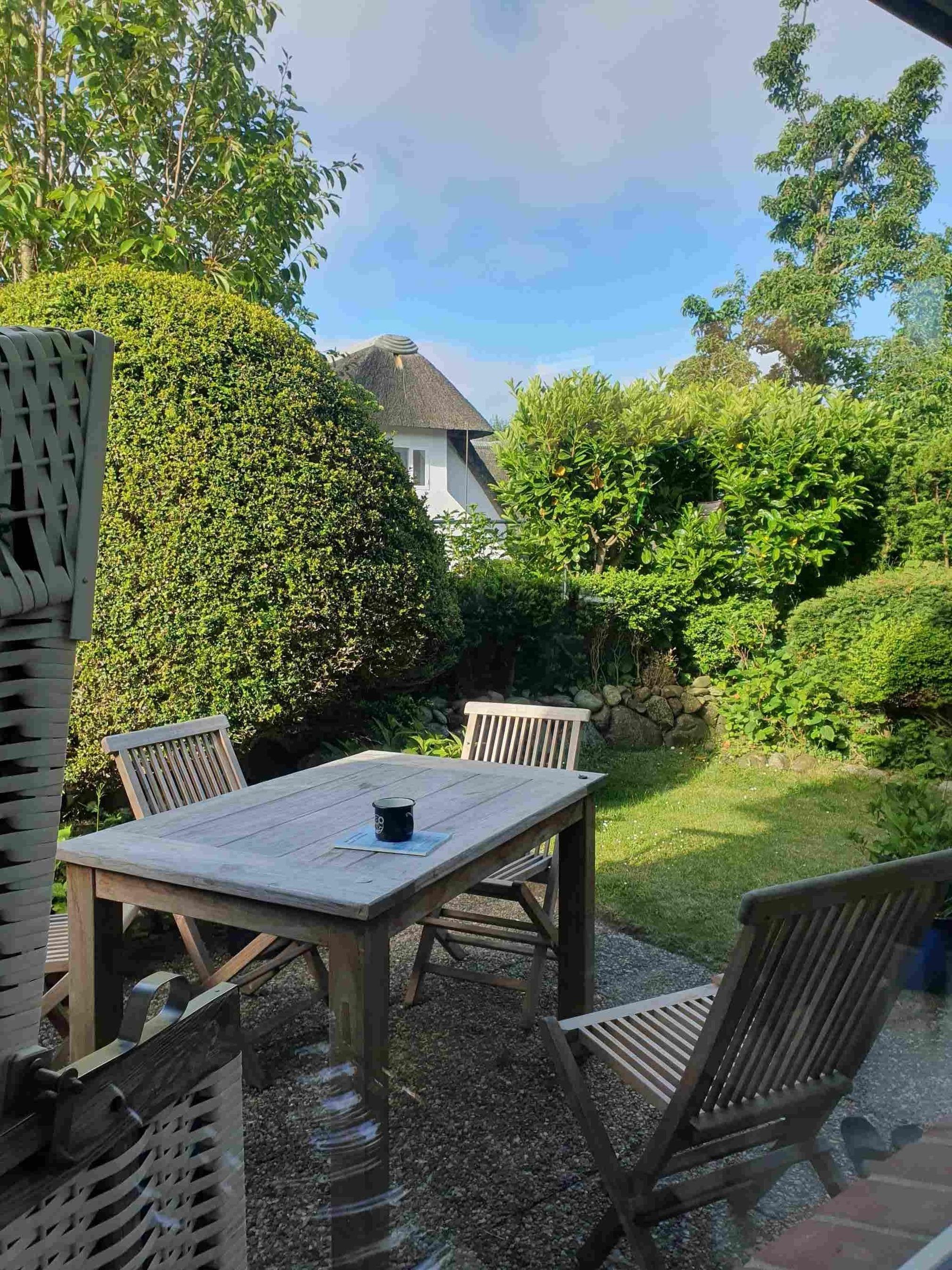 Der Garten ist für Sylt typisch mit einem Friesenwall begrenzt.