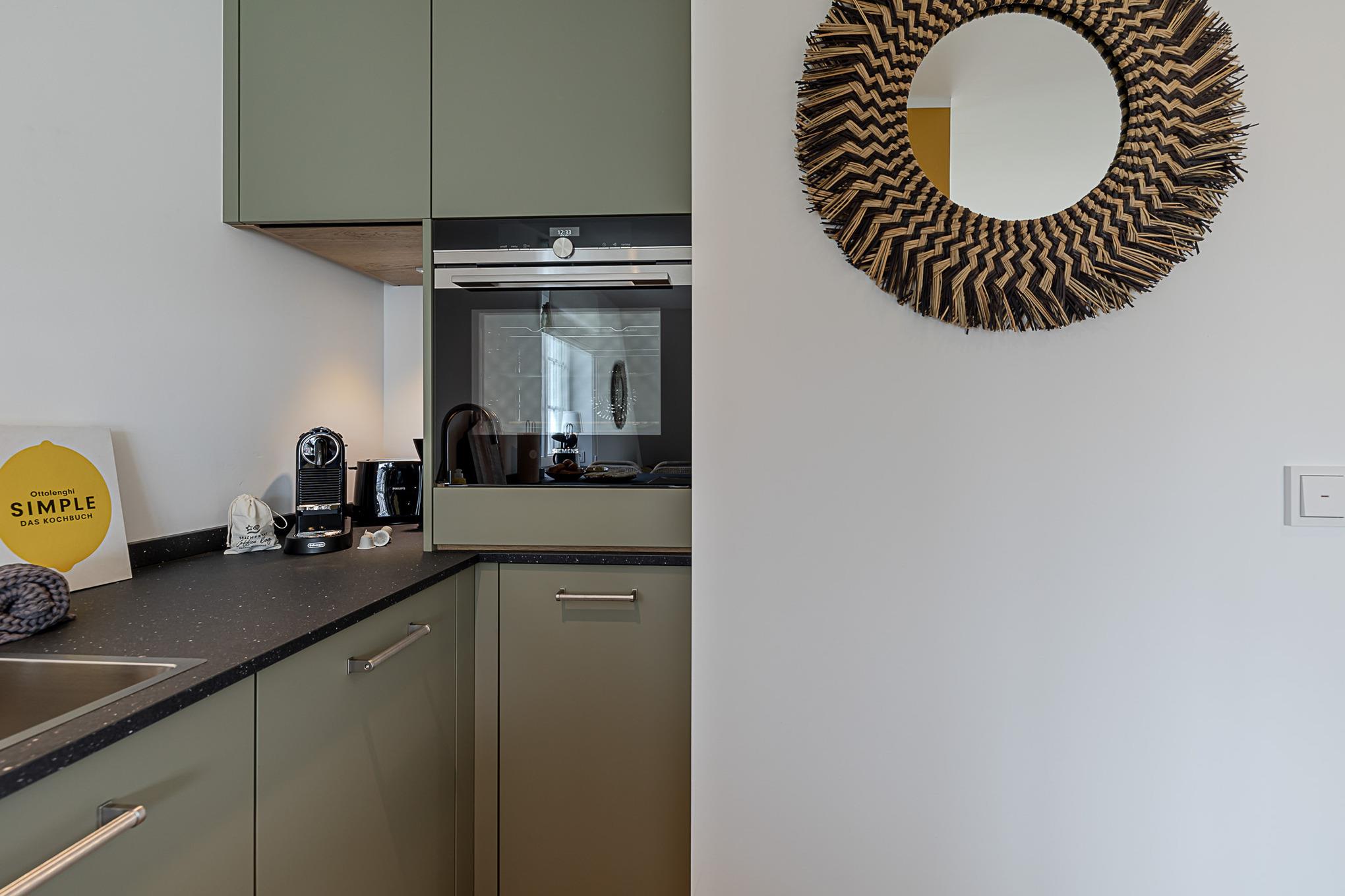 Die moderne Küche ist mit hochwertigen Markengeräten (u. a. Siemens) ausgestattet und bietet alles, was Sie für die Zubereitung Ihrer Mahlzeiten benötigen. Ein Supermarkt und ein Weinhandel sind in etwa 5 Gehminuten erreichbar.