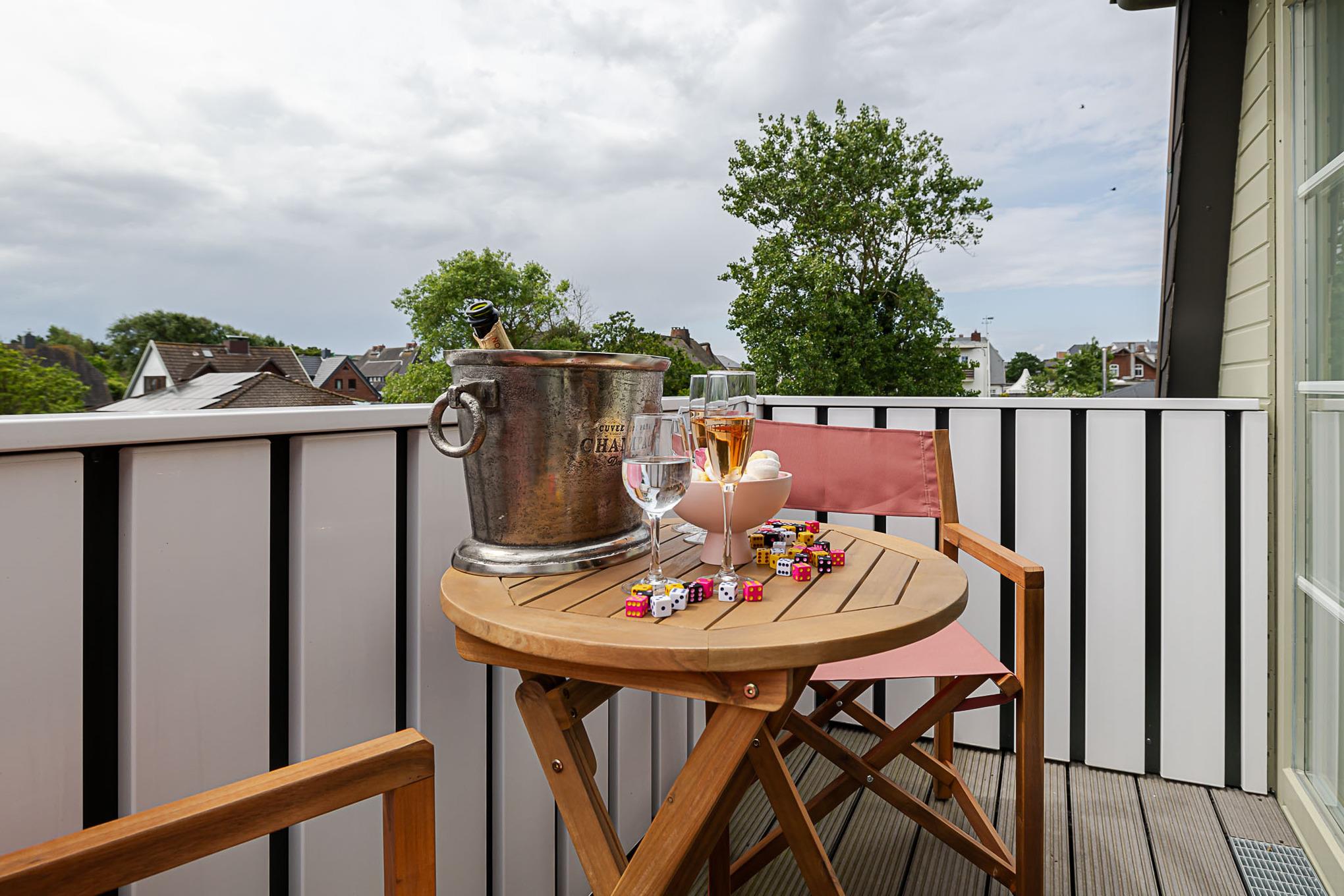 Auf dem Balkon stehen Ihnen von Mai bis Oktober bequeme Möbel zur Verfügung – perfekt, um die frische Nordseeluft zu genießen, ein Frühstück in der Sonne zu verbringen oder den Tag bei einem Glas Wein ausklingen zu lassen.