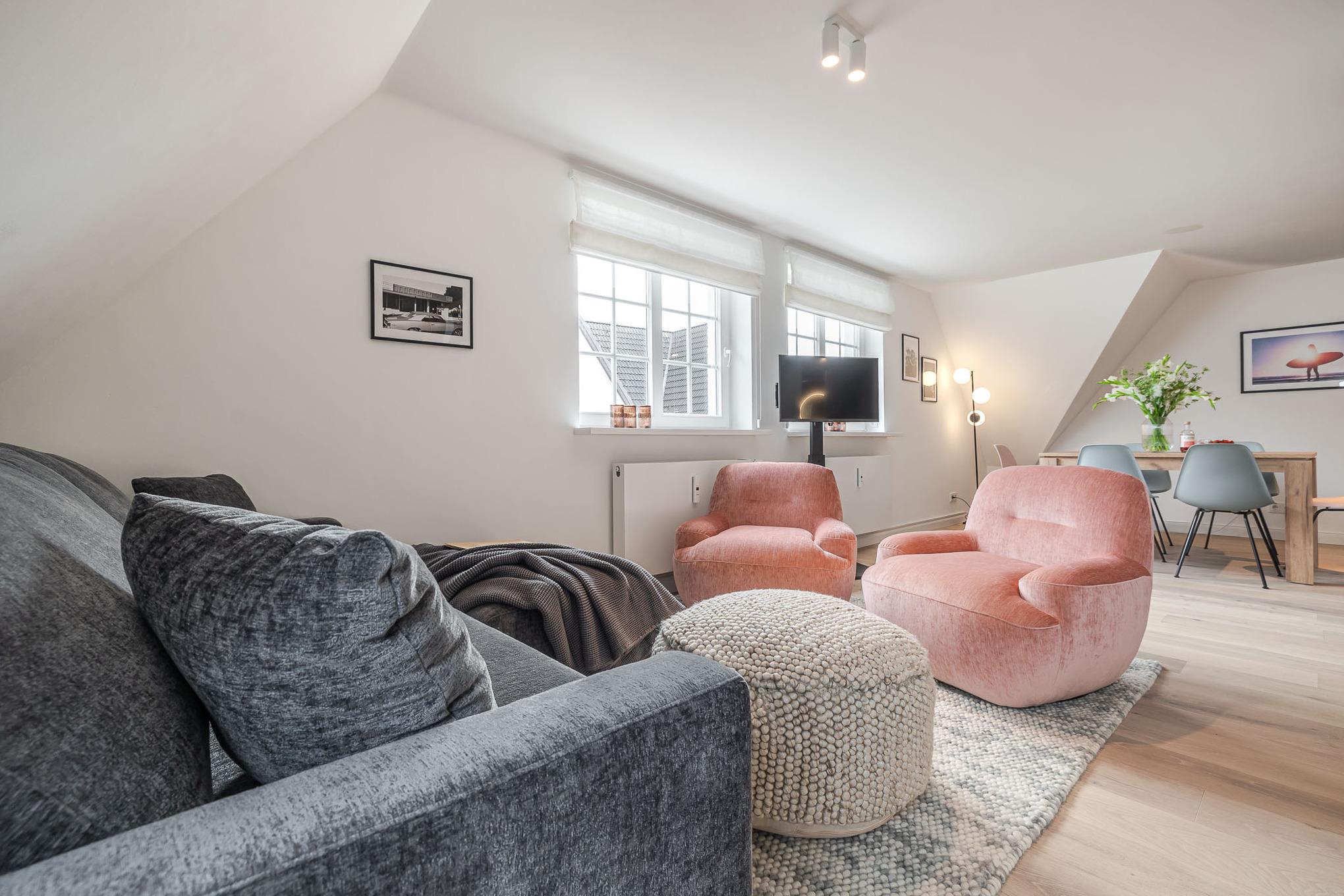Und danach kehren Sie in unsere frisch renovierte Kajüte #9 im neuen CPTN Nicolai Resort ein. Mitten in Westerland erwartet Sie auf großzügigen 85 Quadratmetern ein hochwertiges Urlaubsdomizil mit vier liebevoll gestalteten Räumen. Die Wohnung bietet Platz für bis zu sechs Personen und empfängt Sie mit hohen lichtdurchfluteten Räumen, warmem Eichenparkett, einer durchdachten Raumaufteilung und einem Interieur, das Ruhe Eleganz und Inselgefühl perfekt verbindet.