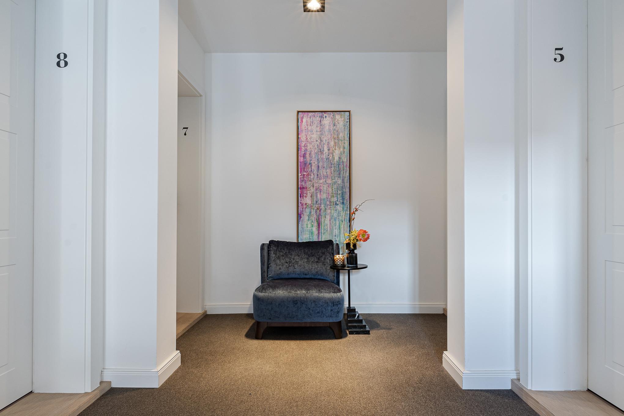 Für aktive Auszeiten steht Ihnen ein gemeinschaftlicher Fitnessraum mit Peloton®-Bike, Crosstrainer und Spiegelwand zur Verfügung. Yogamatten können auf Wunsch dazugebucht werden. Anschließend laden Sauna und Liegen zum Entspannen ein.