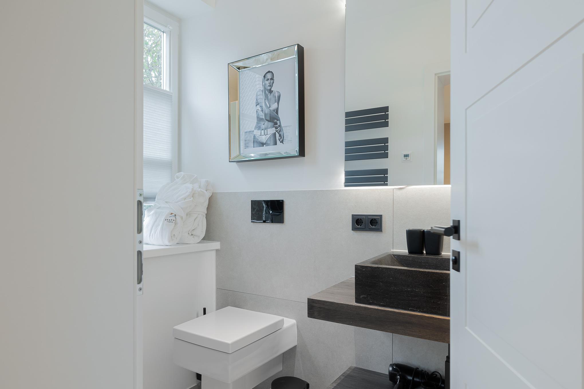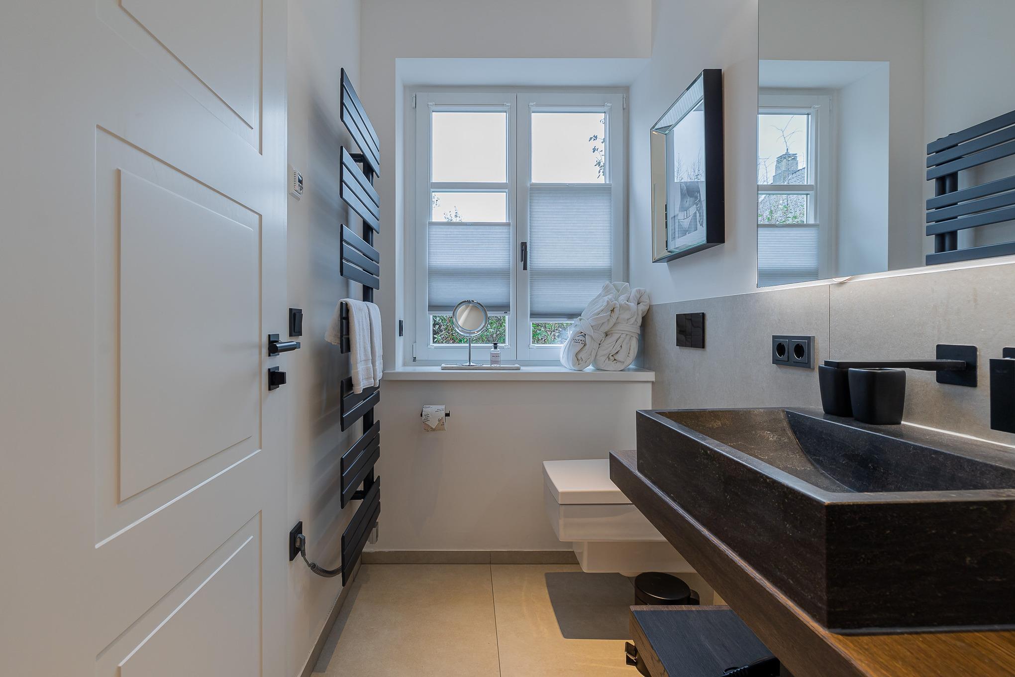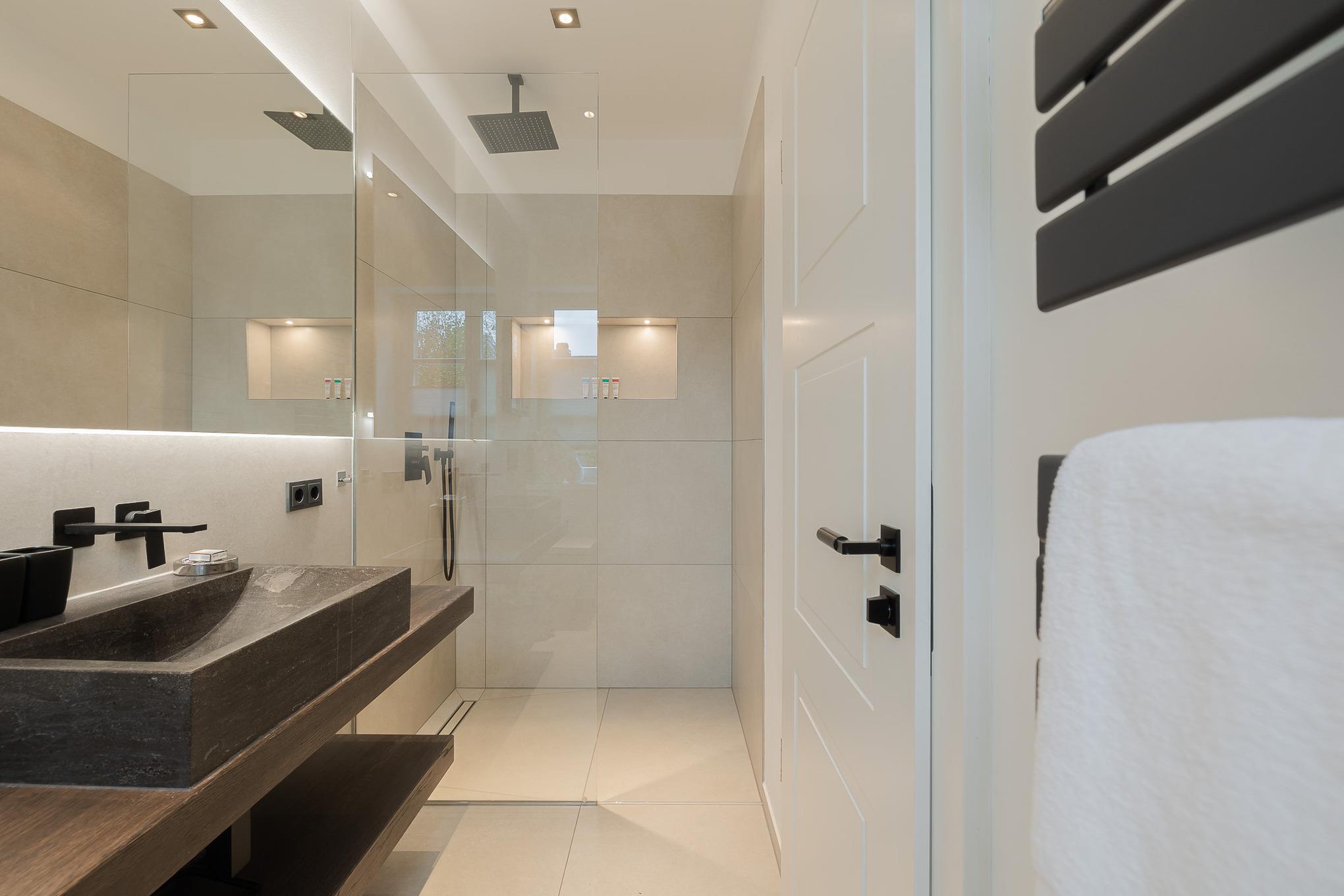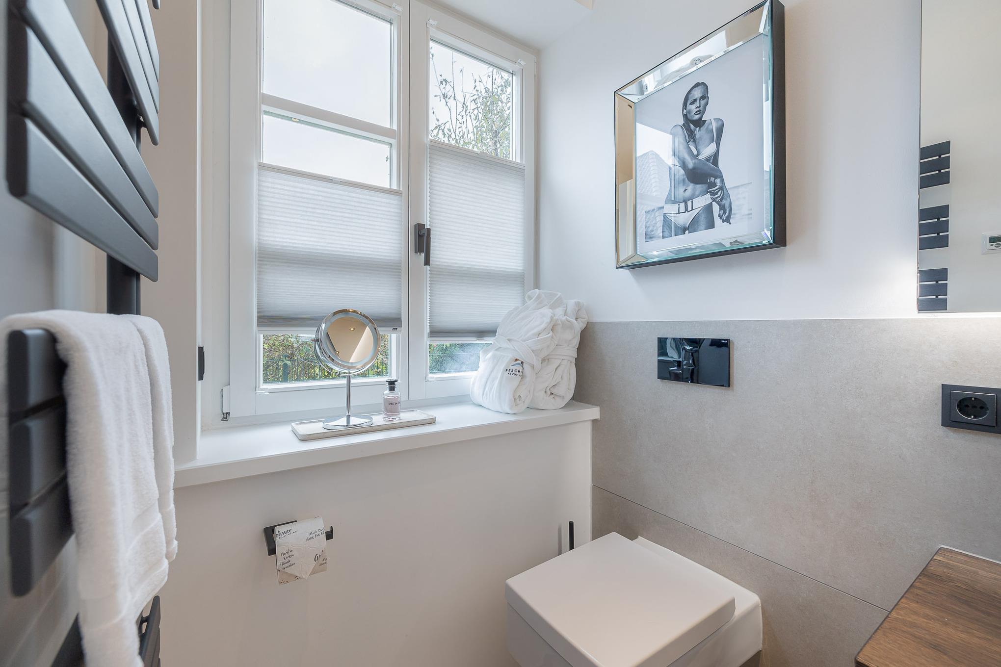 Im stilvollen Badezimmer sorgt eine großzügige Regendusche für echtes Spa-Gefühl. Die Fußbodenheizung in der gesamten Wohnung garantiert behagliche Wärme, auch an kühleren Tagen. Bei Anreise erwartet Sie ein kleines Starterpaket für Küche und Bad.