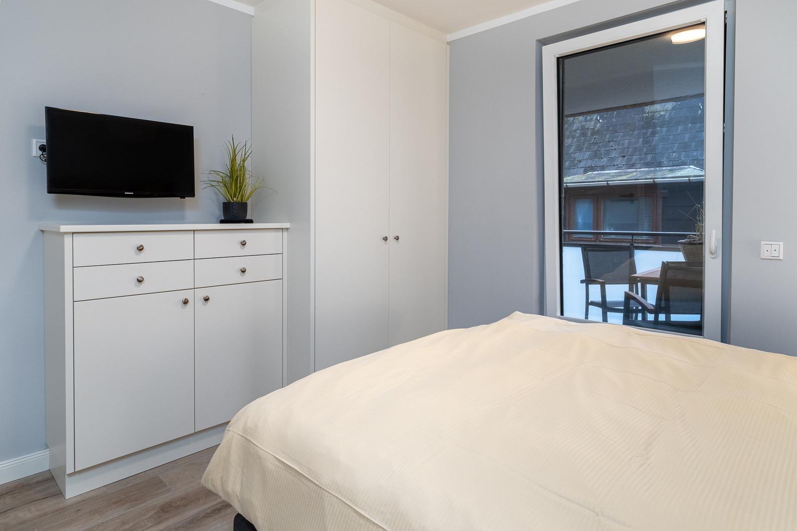 Unsere Wohnung bietet Ihnen Platz für bis zu 4 Personen. Alle Räume sind gefliest, die Wohnräume in warmer Holzoptik. 2 Schlafzimmer mit Boxspringbetten 160×200, jeweils mit Einbauschrank, Kommode sowie TV ausgestattet und lassen Sich durch elektr. Rollläden auch perfekt verdunkeln. Zusätzlich zum Duschbad steht ein separates Gäste-WC zur Verfügung. Der Wohn-Essbereich wurde mit einer interessanten Küche zum Familienmittelpunkt gestaltet! Südseite und Zugang zum überdachten Balkon bieten die perfekte Gelegenheit für ein Freiluftfrühstück oder einen Sundowner.