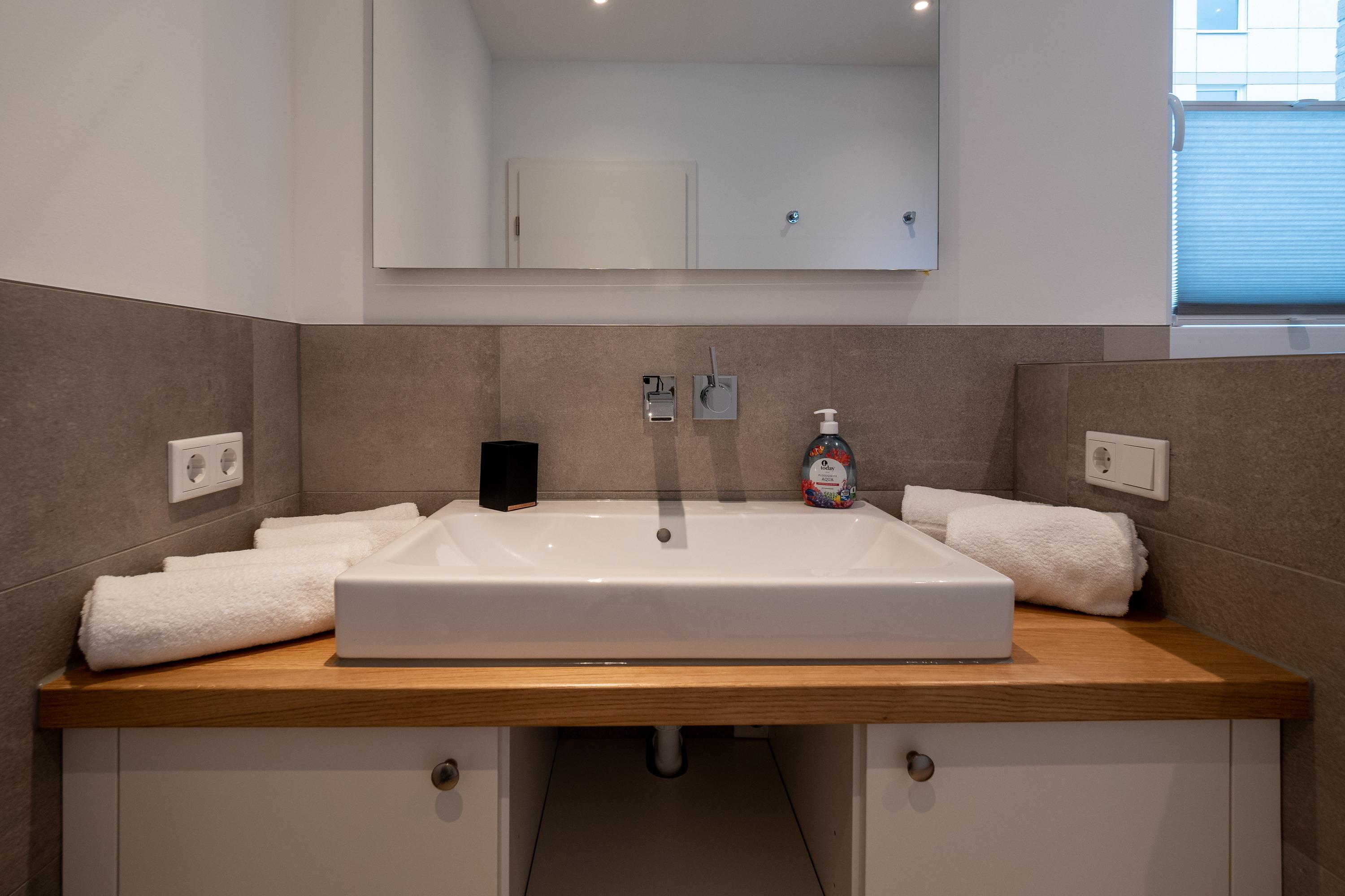 Zusätzlich kann bei Verfügbarkeit ein weiteres Schlafzimmer und ein Bad mit Sauna im Souterrain dazugemietet werden.