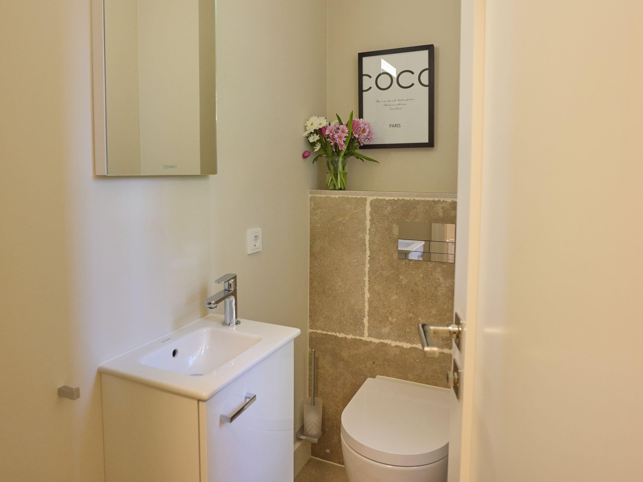 Zu Ihrer rechten finden Sie eine kleines Gäste-WC. Vor Ihnen liegt nun direkt die helle, geräumige Wohnküche mit Zugang zu ihrem privaten Garten, welcher mit gemütlichen Möbeln ausgestattet ist und zum Verweilen einlädt.