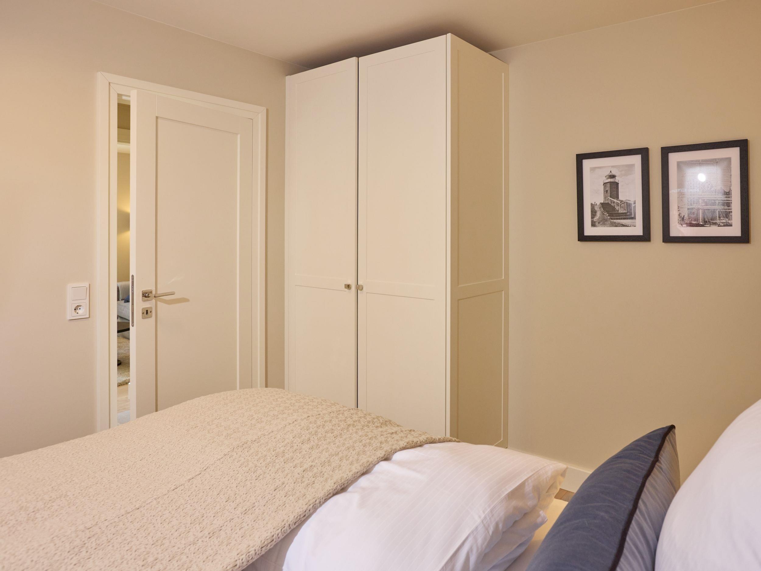 Über ihren privaten Eingang betreten Sie Ihr helles Feriendomizil. Rechts befindet sich die Tür zum lichtdurchfluteten Schlafzimmer mit komfortablen Doppelbett und genügend Stauraum.