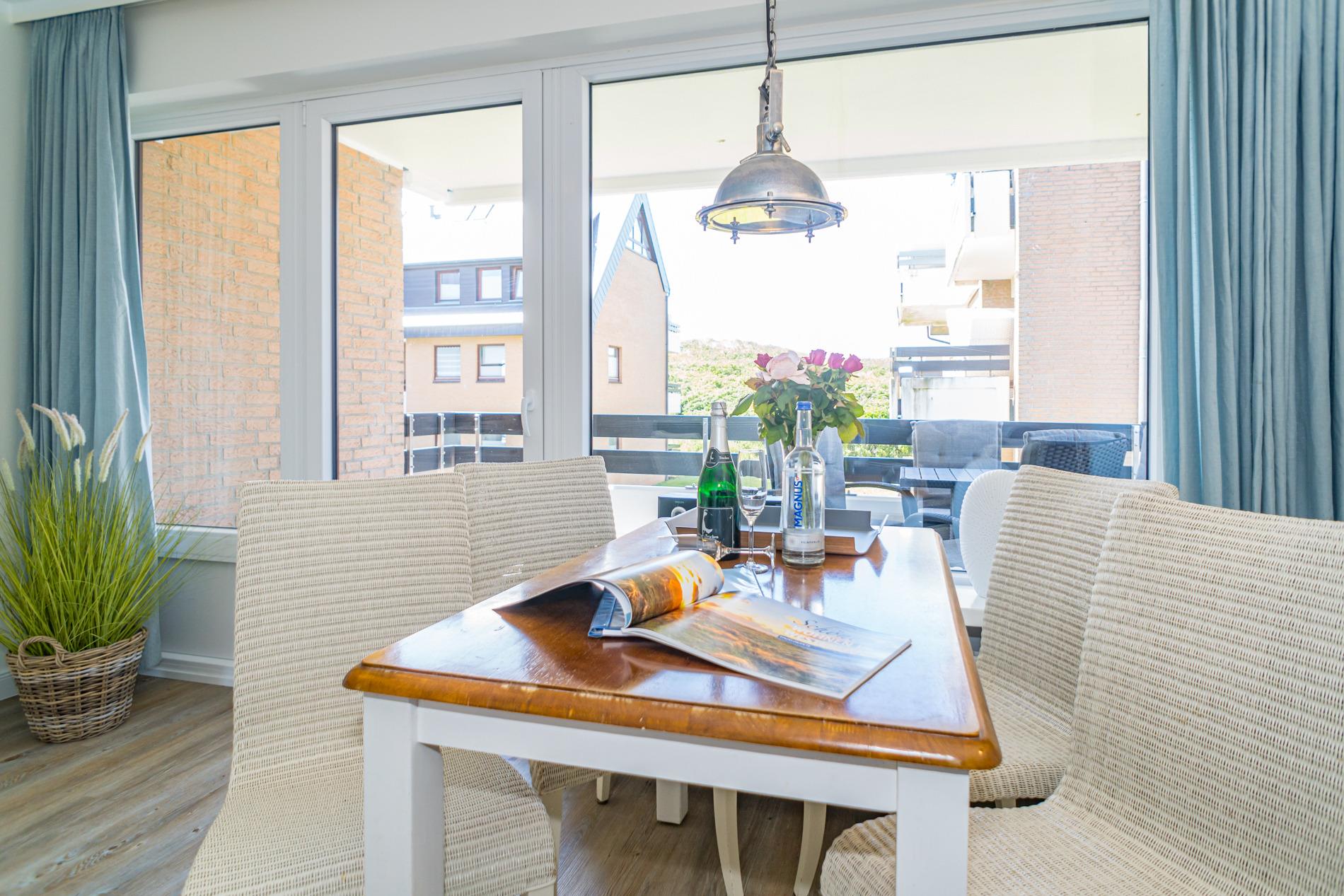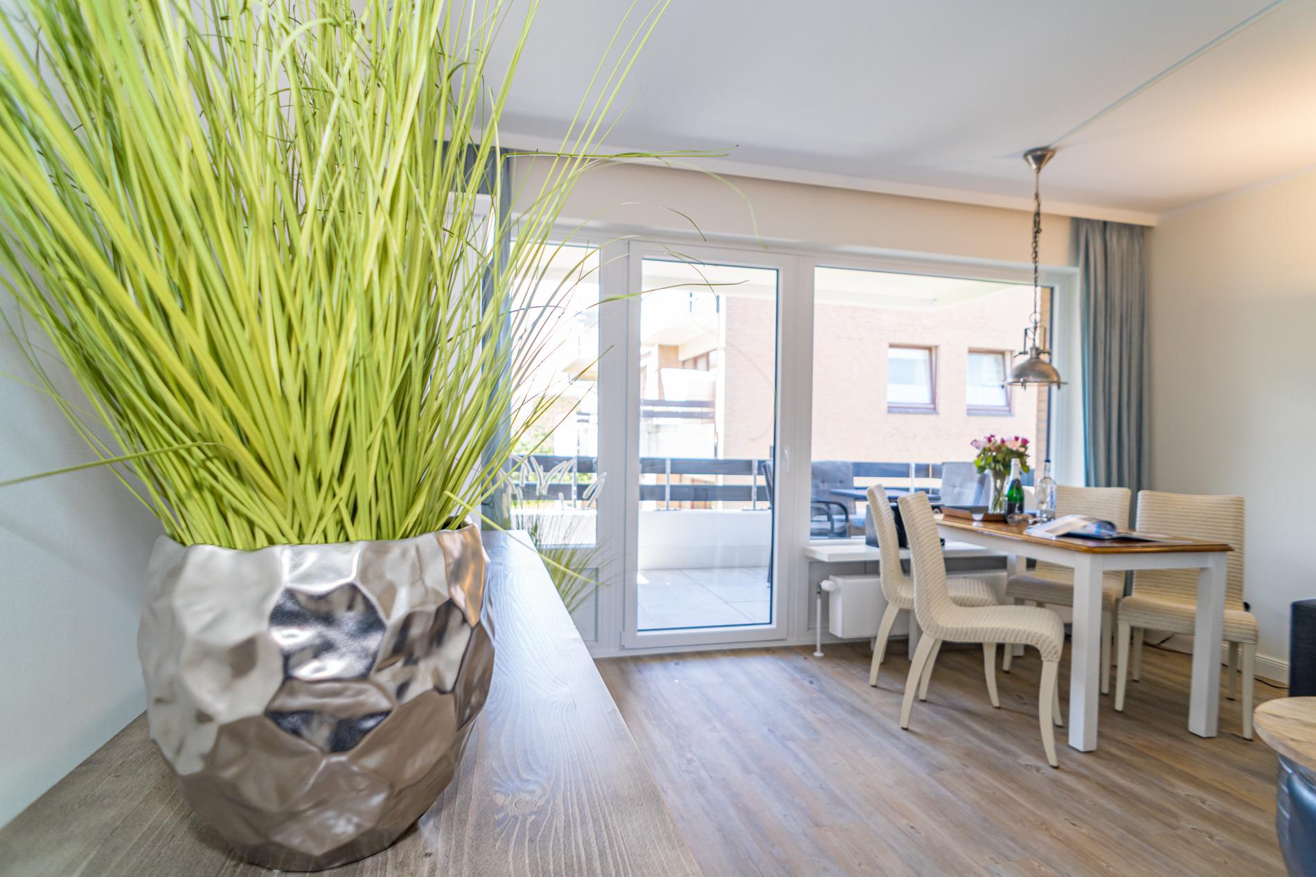 Erleben Sie modernen Wohnkomfort in dieser vollständig neu renovierten 2-Zimmer-Nichtraucher-Ferienwohnung in der 1. Etage, die ca. 45 m² Wohnfläche bietet und Platz für maximal 4 Personen schafft. Der großzügige Westbalkon, ausgestattet mit edlen Balkonmöbeln, Auflagen und einem Strandkorb, lädt in der Nachmittagssonne zum Entspannen ein. Ein eigener PKW-Stellplatz rundet das Angebot ab.