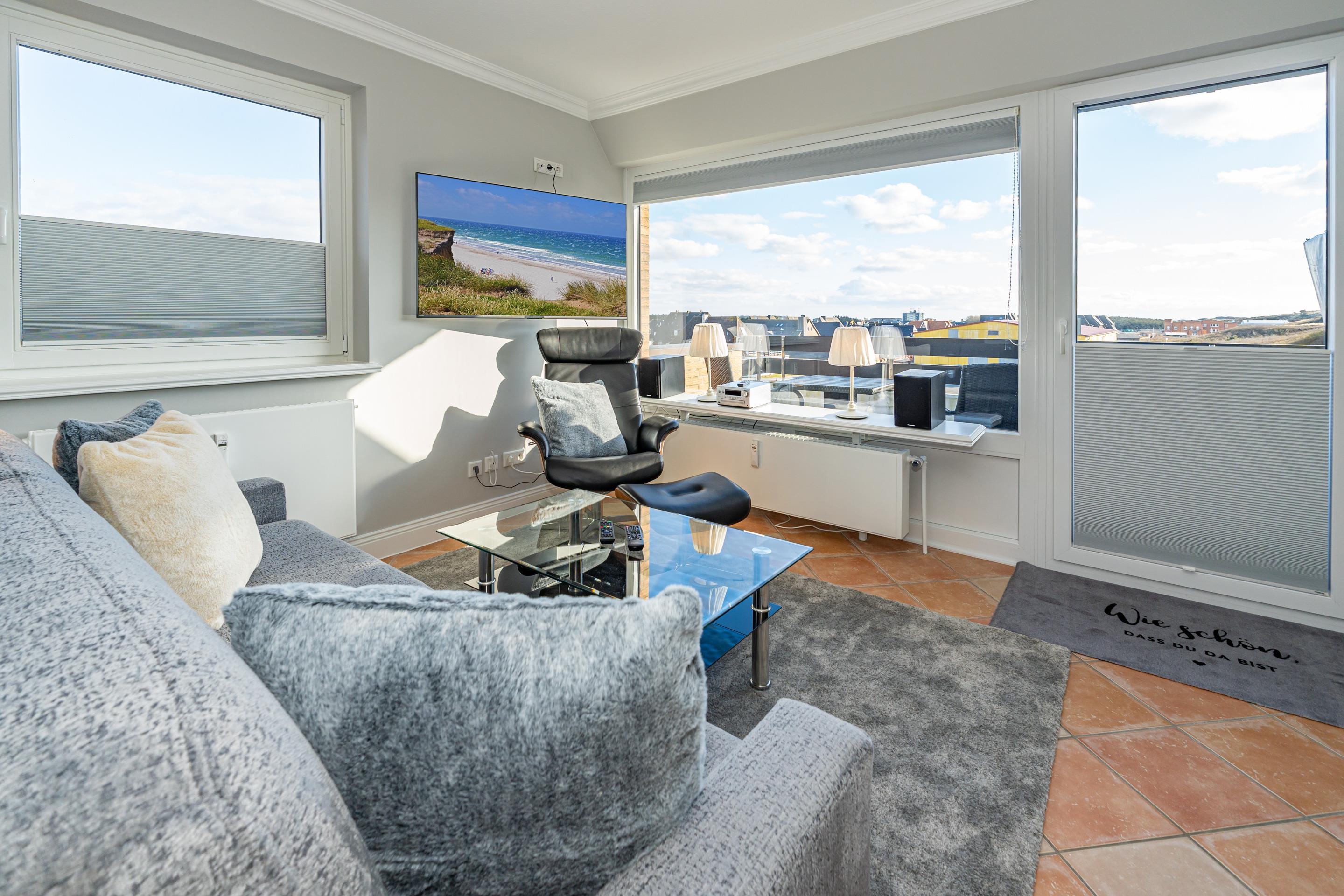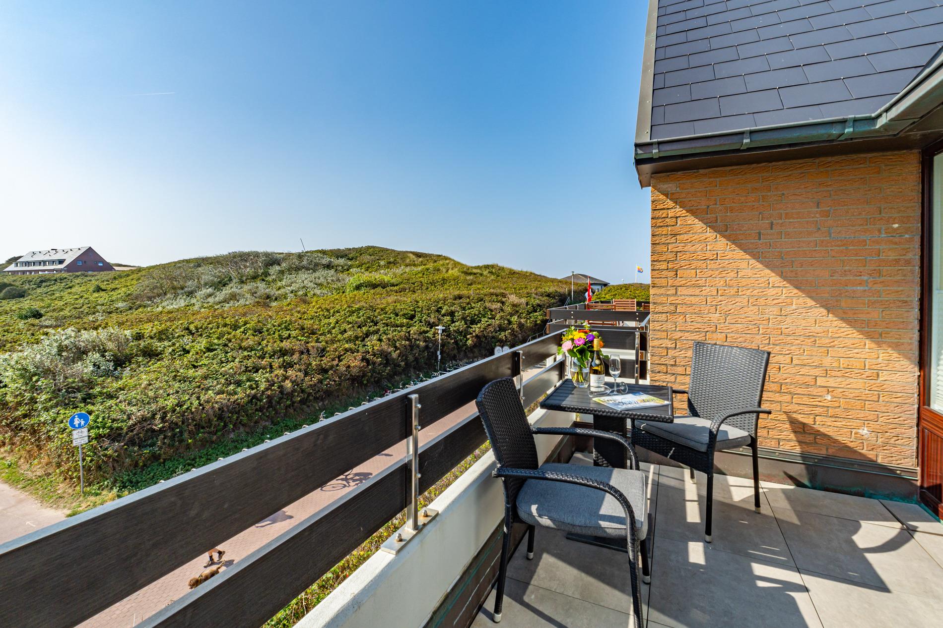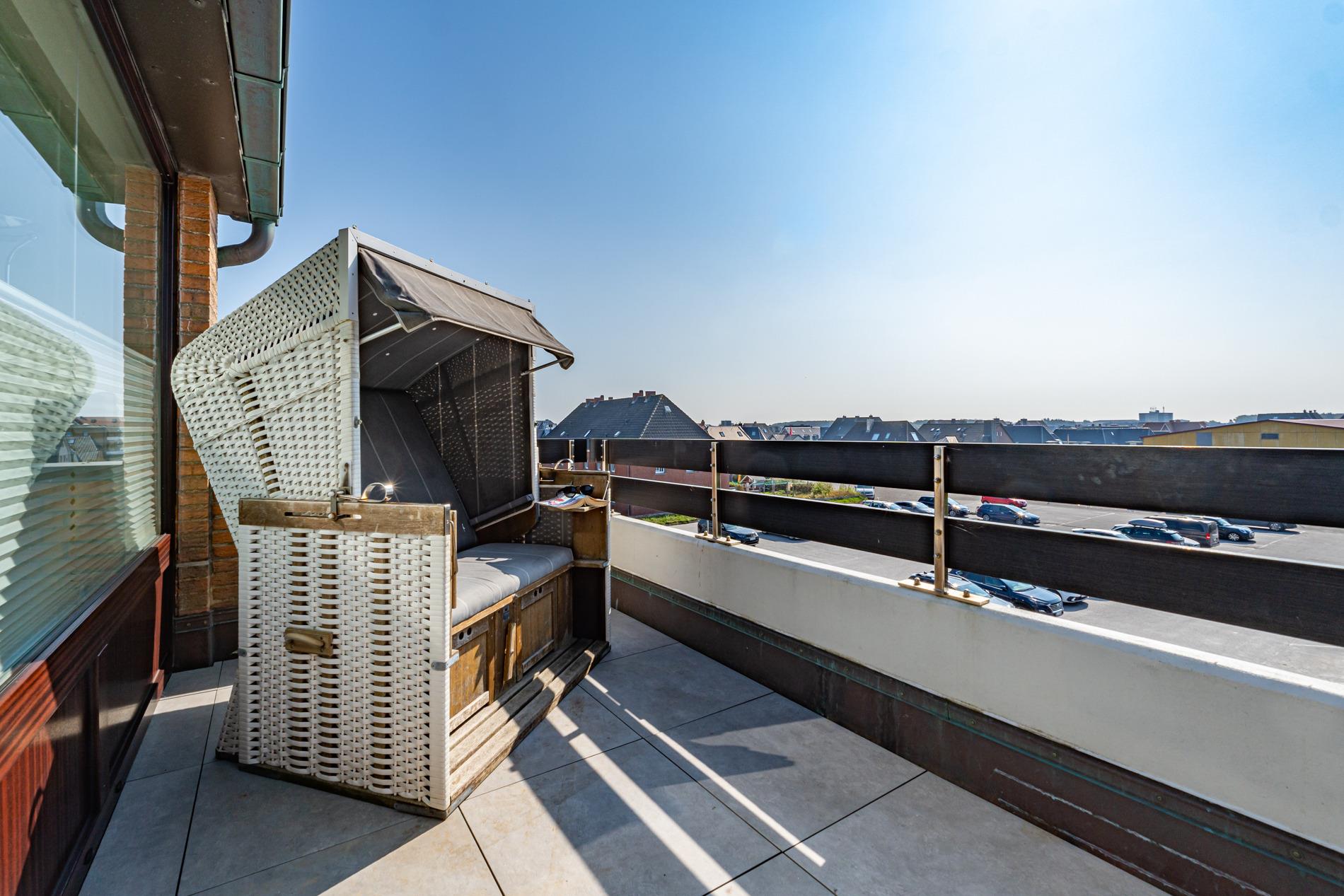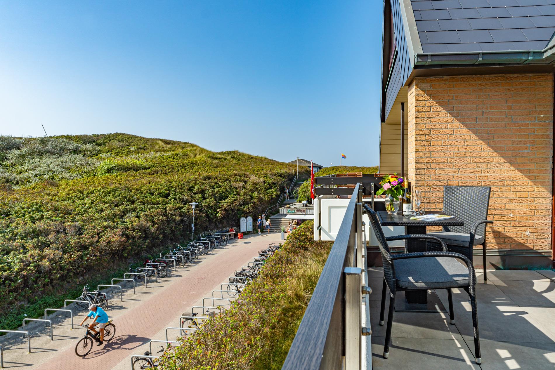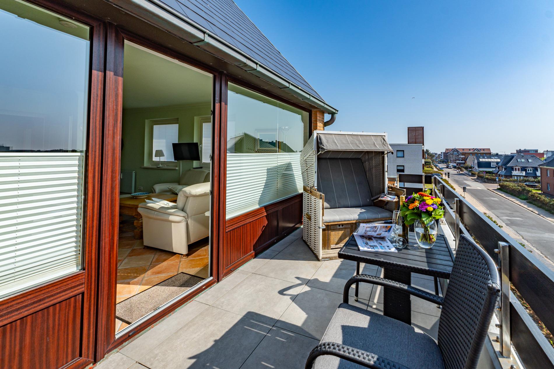 Ruhige Eck-Ferienwohnung in der obersten Etage direkt am Standübergang – mit Südbalkon, Strandkorb und PKW-Stellplatz am Haus
