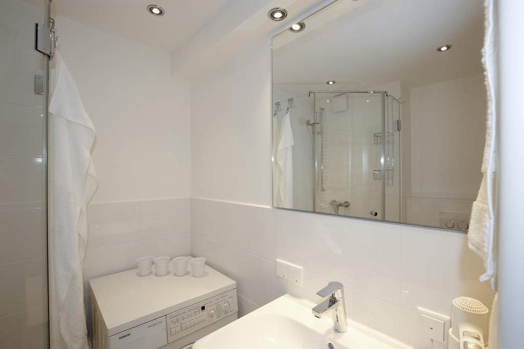 Im neuen Bad befindet sich eine Dusche, ein WC, ein Waschtisch und eine Waschmaschine.