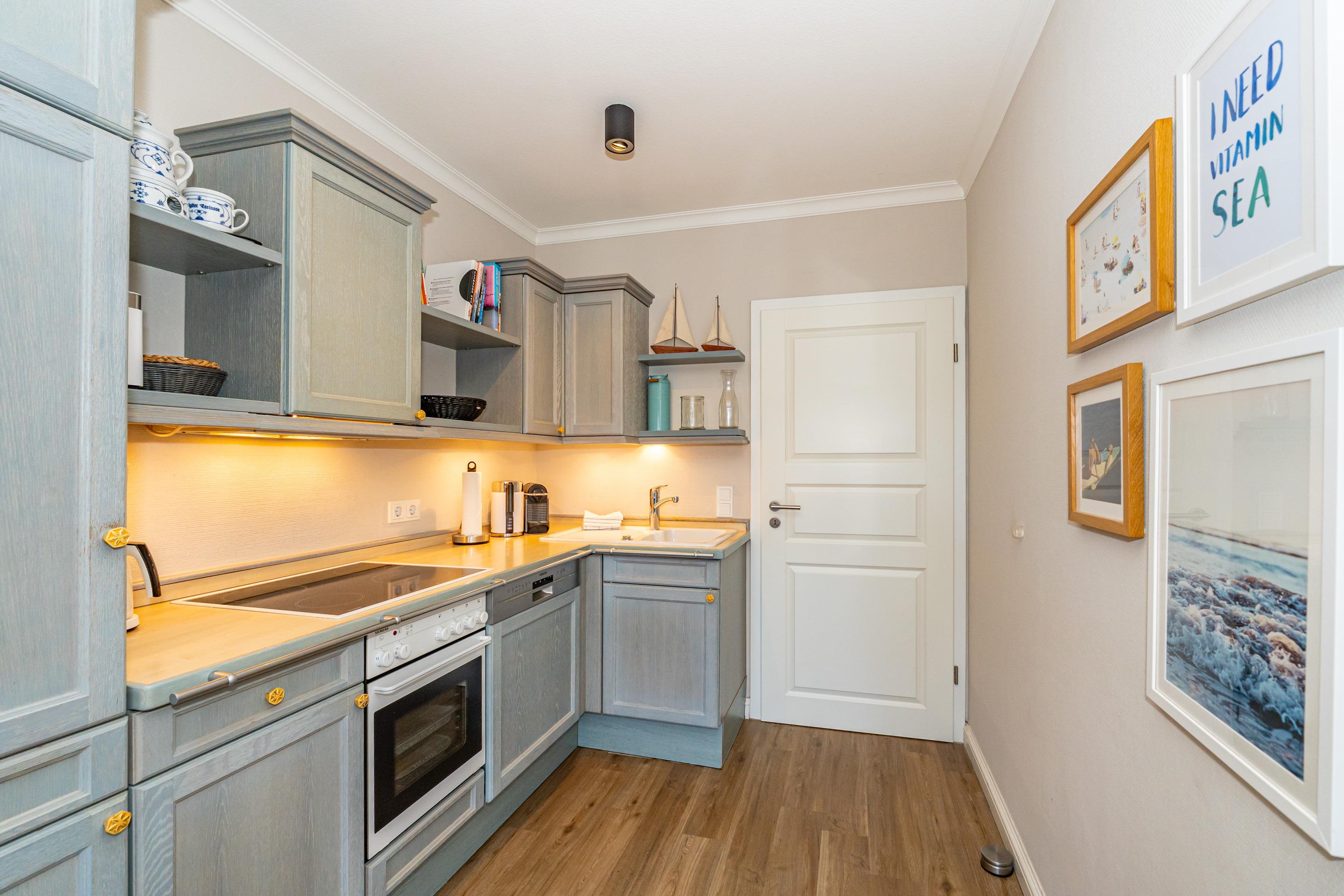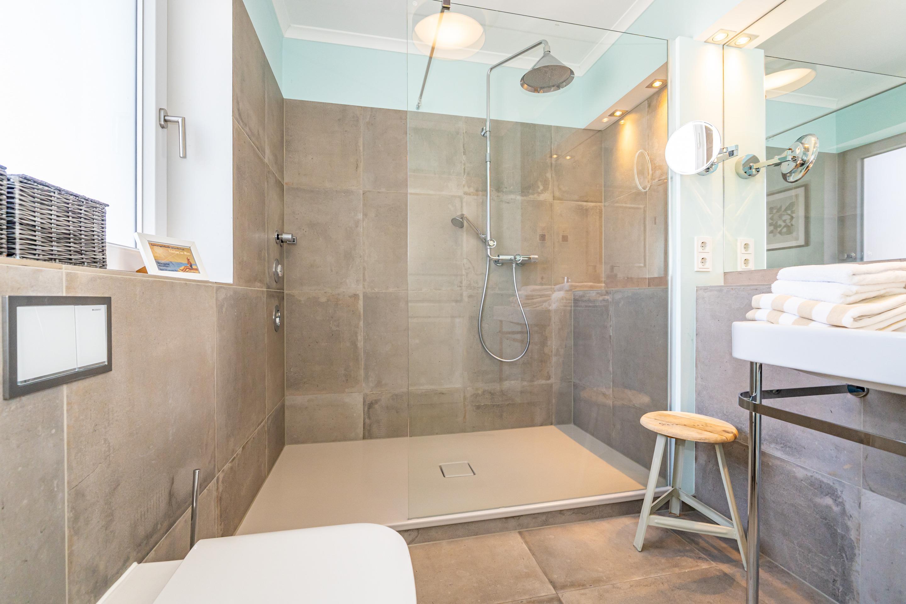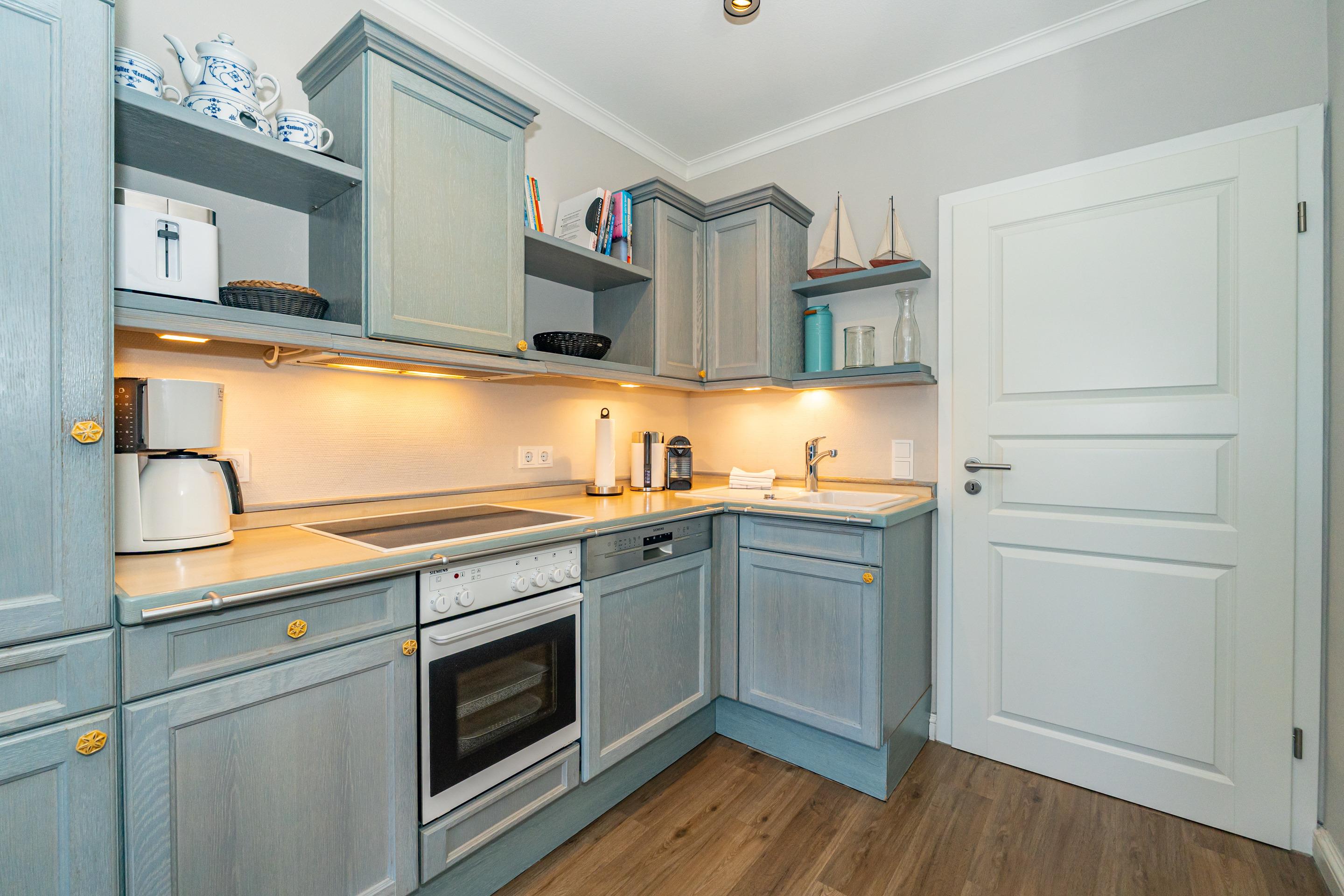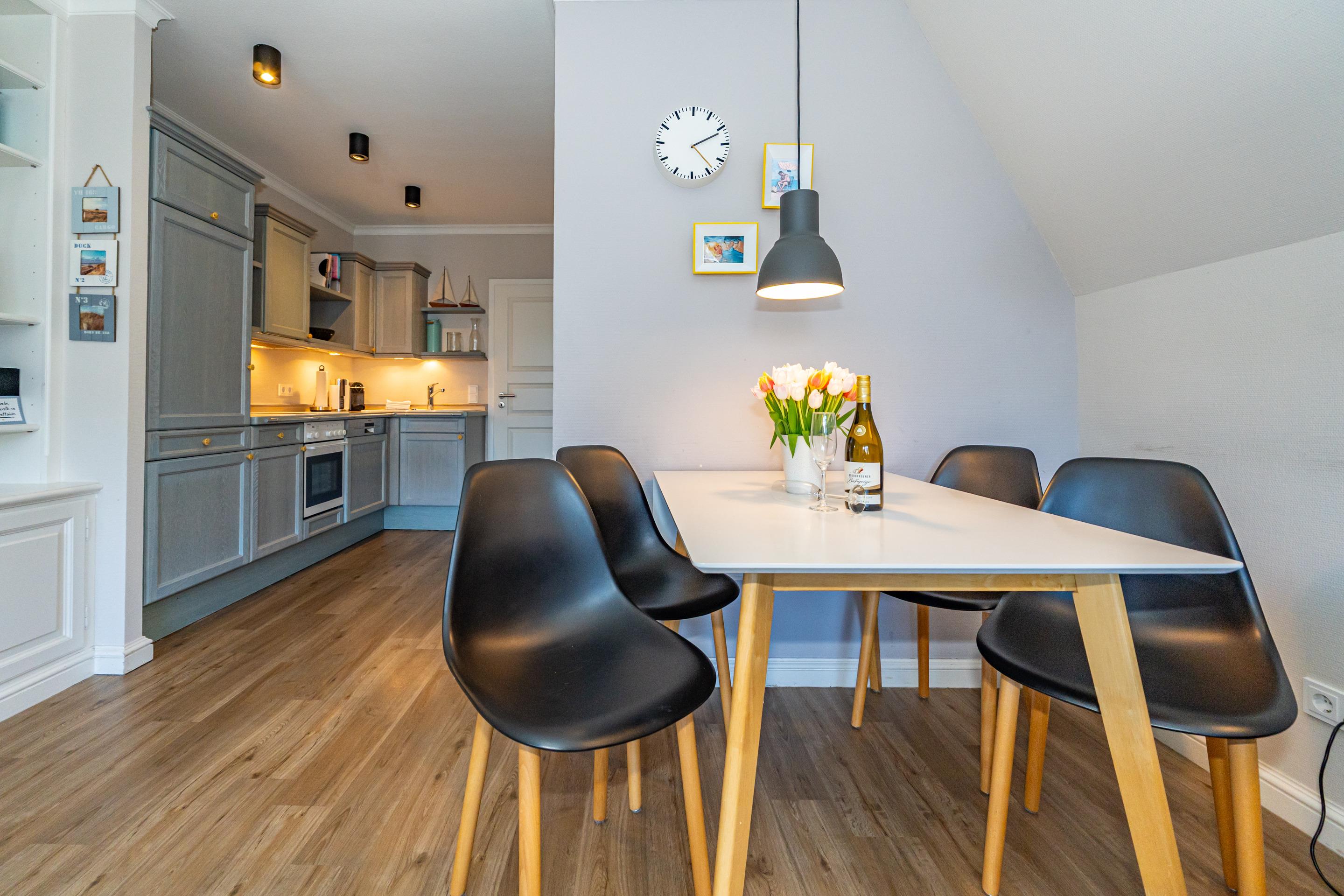 Mit pastelligen Farben und einem modernen Möbelmix bietet diese hochwertig ausgestattete Ferienwohnung "Sylter Glück" in Westerland auf einer Fläche von 75 m² Platz für maximal 4 Personen. Sie befindet sich in der 2. Etage und verfügt neben dem Wohnzimmer über ein Schlafzimmer sowie ein Badezimmer. Zur Ausstattung gehören ein Ostbalkon mit Balkonmöbeln, Auflagen, sowie ein offener WLAN Hotspot im Haus. Der Wohnbereich vereint eine gemütliche Schlafcouch (Liegefläche 1,40 x 2m), einen Flachbild-TV sowie eine voll ausgestattete offene Einbauküche mit Backofen, Geschirrspüler, Cerankochfeld sowie Nespressomaschine (Kapseln). Kühlschrank, Kaffeemaschine, Toaster und Wasserkocher gehören zur Grundausstattung. Vom Wohnzimmer aus hat man Zutritt auf den geschützten Balkon, der bei schönem Wetter zum sonnenbaden und verweilen einlädt. Für einen guten Start in den Tag sorgt das trendige großzügige Badezimmer, das nicht nur ein optischer Hingucker ist, sondern mit Regendusche, Fön und Handtuchtrockner entsprechende Annehmlichkeiten mit sich bringt.