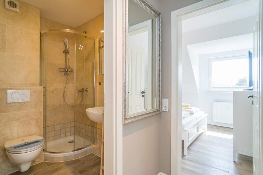 Ein modernes Duschbad/WC mit funktionaler Ausstattung rundet das Raumkonzept ab.