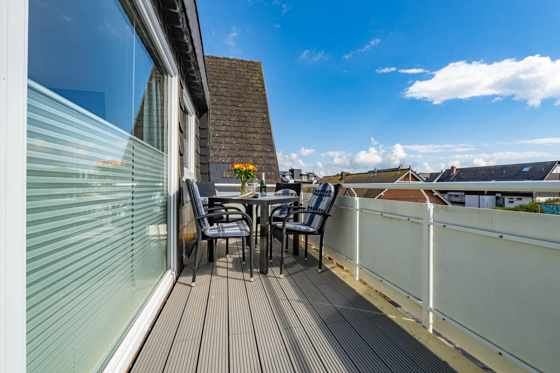 Erleben Sie modernen Wohnkomfort in dieser großzügigen, geschmackvoll eingerichteten 4-Zimmer-Maisonette-Ferienwohnung (ca. 68 qm) in der 2. Etage – ideal für bis zu 5 Personen. Dank der Süd-Ausrichtung strahlt der weitläufige Südbalkon ganztägig in der Sonne und lädt zum Verweilen im Freien ein.