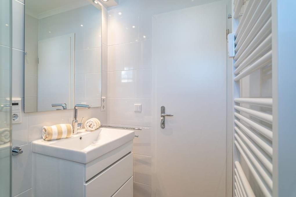 Das neue Badezimmer mit Dusche mit extraflachem Einstieg, Handtuchtrockner, Haartrockner, WC und Fenster lässt sie optimal in den Tag starten.