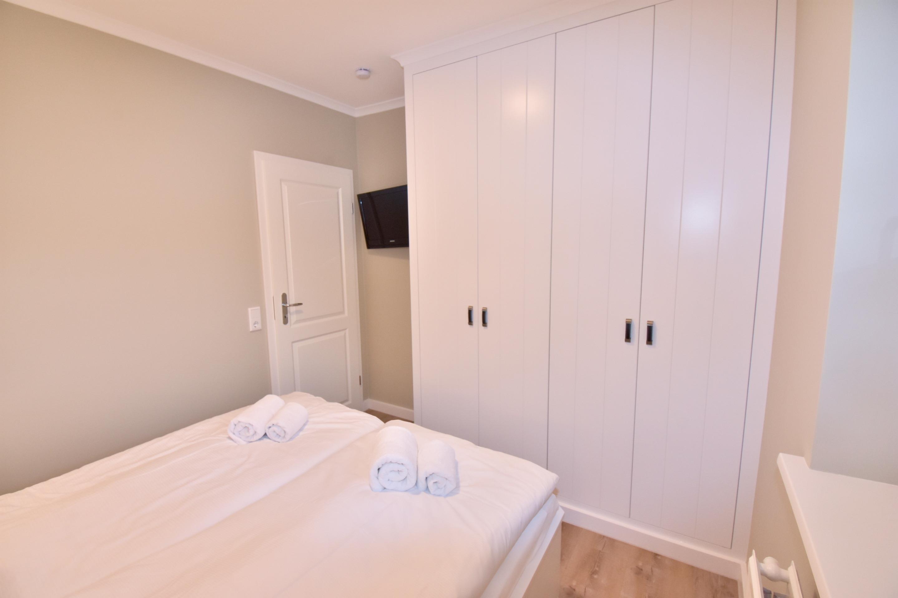 Das Schlafzimmer hat ein neues Doppelbett (Liegefläche 1,60 x 2m mit zwei Einzelmatratzen 0,80 x 2,00 m) mit verstellbarem Kopf- und Fußteil, einen Kleiderschrank mit LED-Innenbeleuchtung und einen weiteren Flachbild-TV.