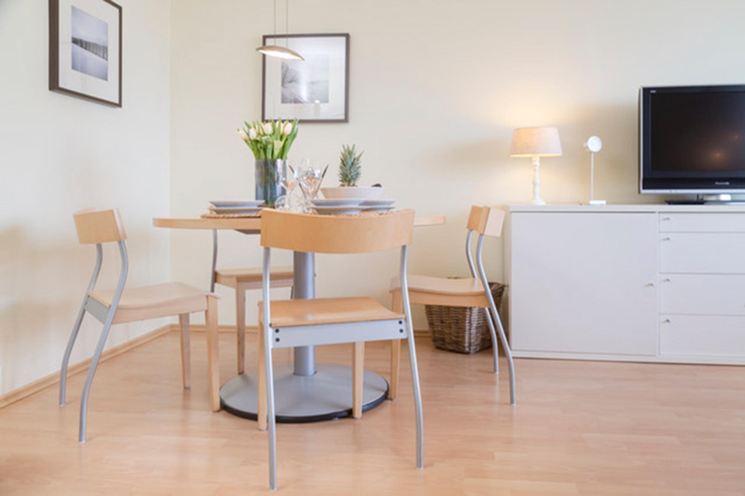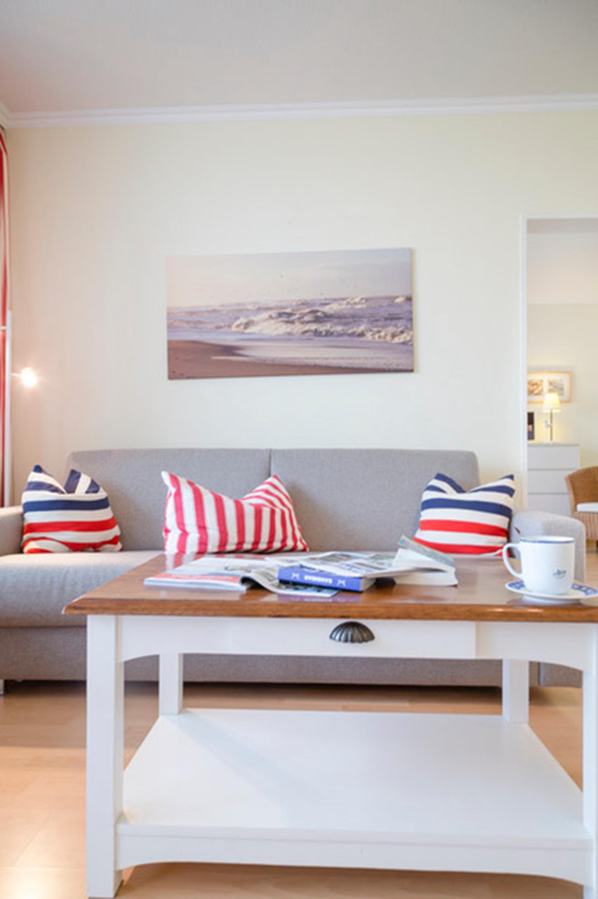 Der helle Wohnraum mit der großzügigen Terrasse und seinem tollen Blick bis zum Leuchtturm von Kampen, bietet ein besonderes Highlight. Die Wohnung ist komplett mit Laminatboden ausgelegt. Internet-Radio , großer Flat TV mit DVD-Player, Kabel TV .